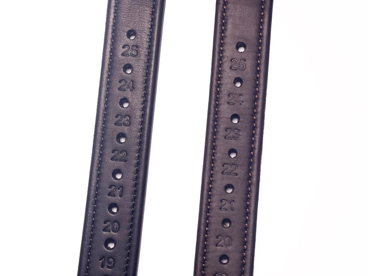 These stirrup leathers are super soft, non-stretch, and wrapped in calfskin with a nylon webbing centre for extra strength. They are plated at the top instead of stitched to allow the skirt of the saddle to sit flat, offering ultimate comfort under your leg and are suitable for any discipline with any saddle. These leathers feature 25 holes with 1/2" spacing for precision adjustment and come pre oiled for convenience.