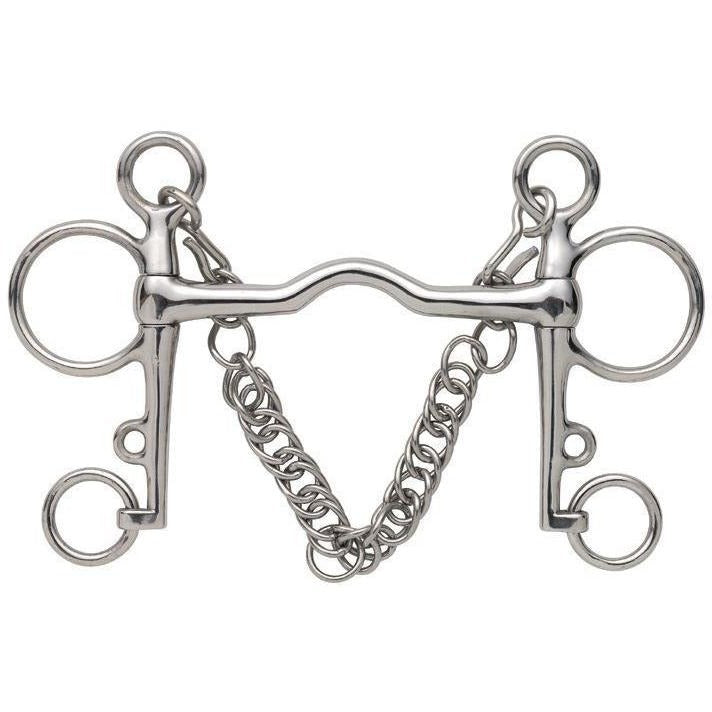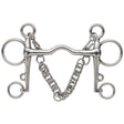 The port in this pelham creates more space for the horse's tongue. Can be used with double reins or pelham roundings.
