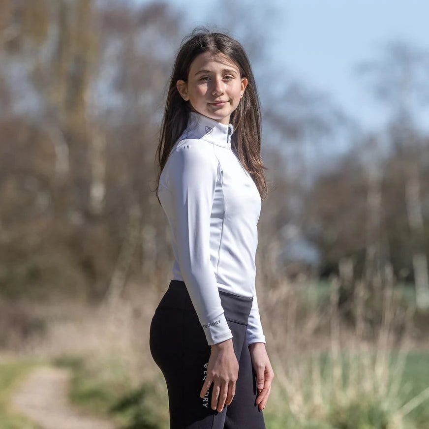 Designed for riders, this equestrian base layer offers the perfect balance of comfort, practicality, and style. Made from super stretchy, water-repellent fabric, it keeps children dry, comfortable, and supported, whether in the saddle or on the ground. The soft, breathable material is gentle on the skin, while underarm vents help maintain freshness during long rides in any weather. This base layer pairs seamlessly with water-repellent leggings, zip-up tops, and jackets, creating a complete, coordinated equestrian look ideal for every young rider.