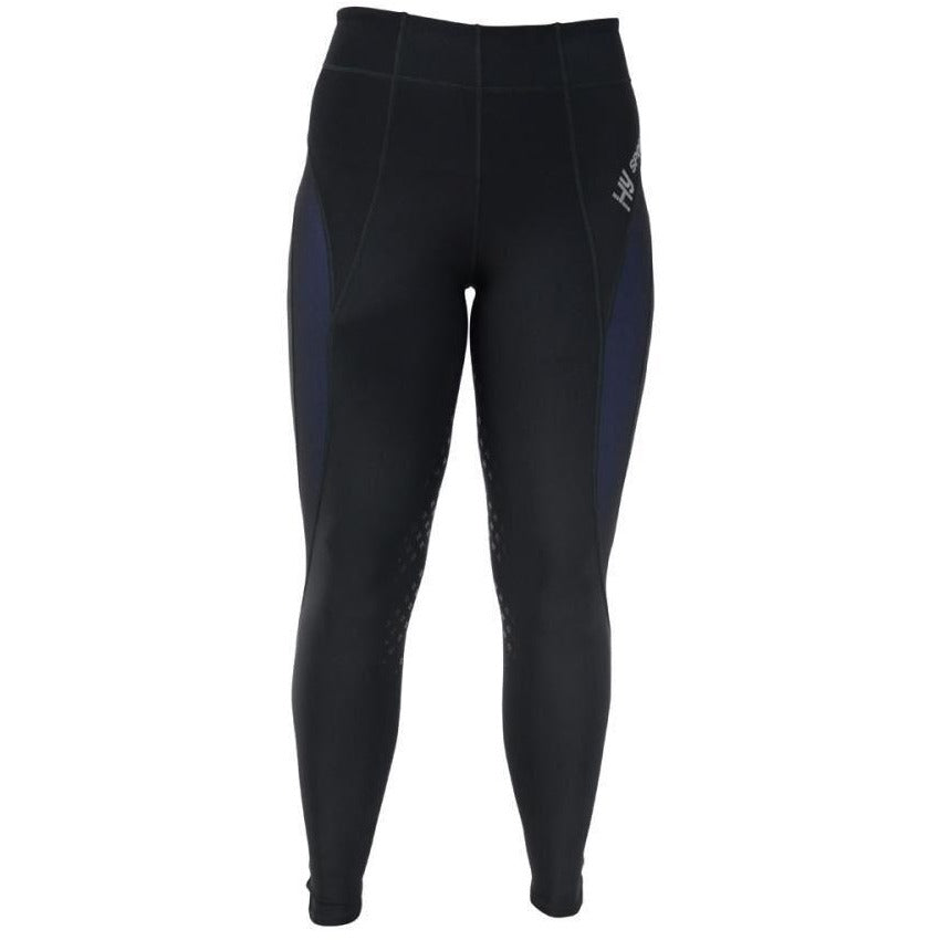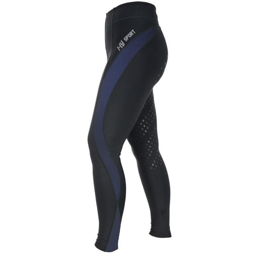 An ideal choice for the active rider allowing ultimate flexibility whether you're running riding or just on the yard! Sitting close to your skin for extra breathability and comfort. Featuring a wide stretch waistband this versatile tight is sure to impress. Delicate silicon full seat provides security in the saddle giving you peace of mind to perform at your best. Midnight blue panels elongate the leg for an athletic feel. With reflective HySPORT branding to the left of the leg and zip pocket at the rear for your phone these easy wear quick drying skins are the ultimate choice for those serious about sport.