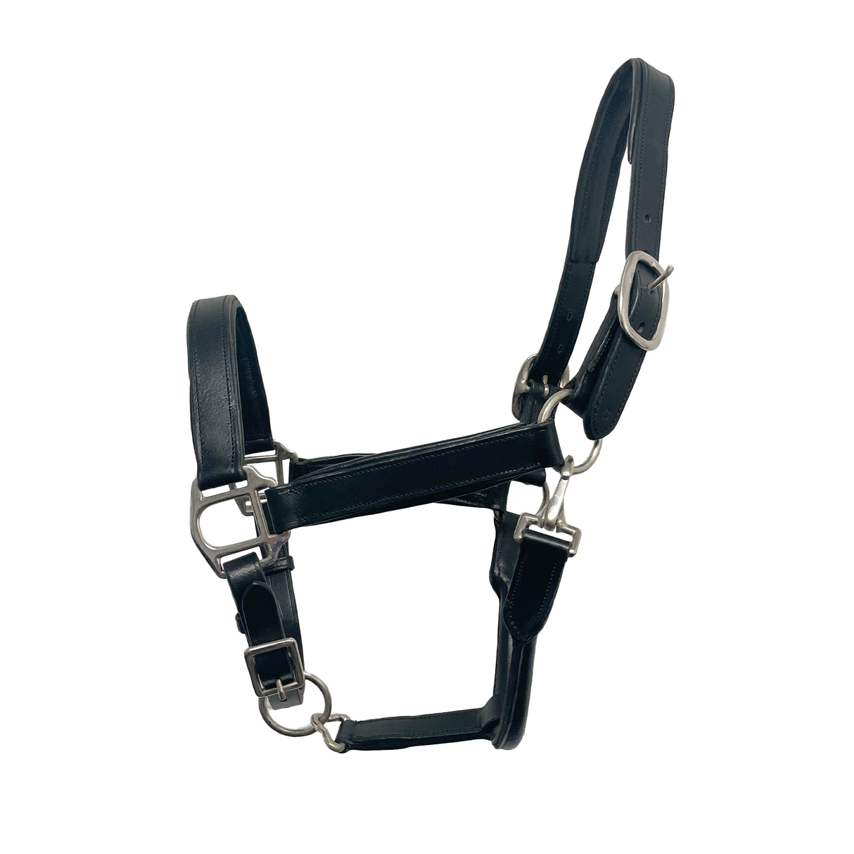 In addition, there is an adjustable noseband, that once again, allows you to tailor the head collar to the individual horse. The head collar also has a clip on the rounded throatlash on the left for convenience.