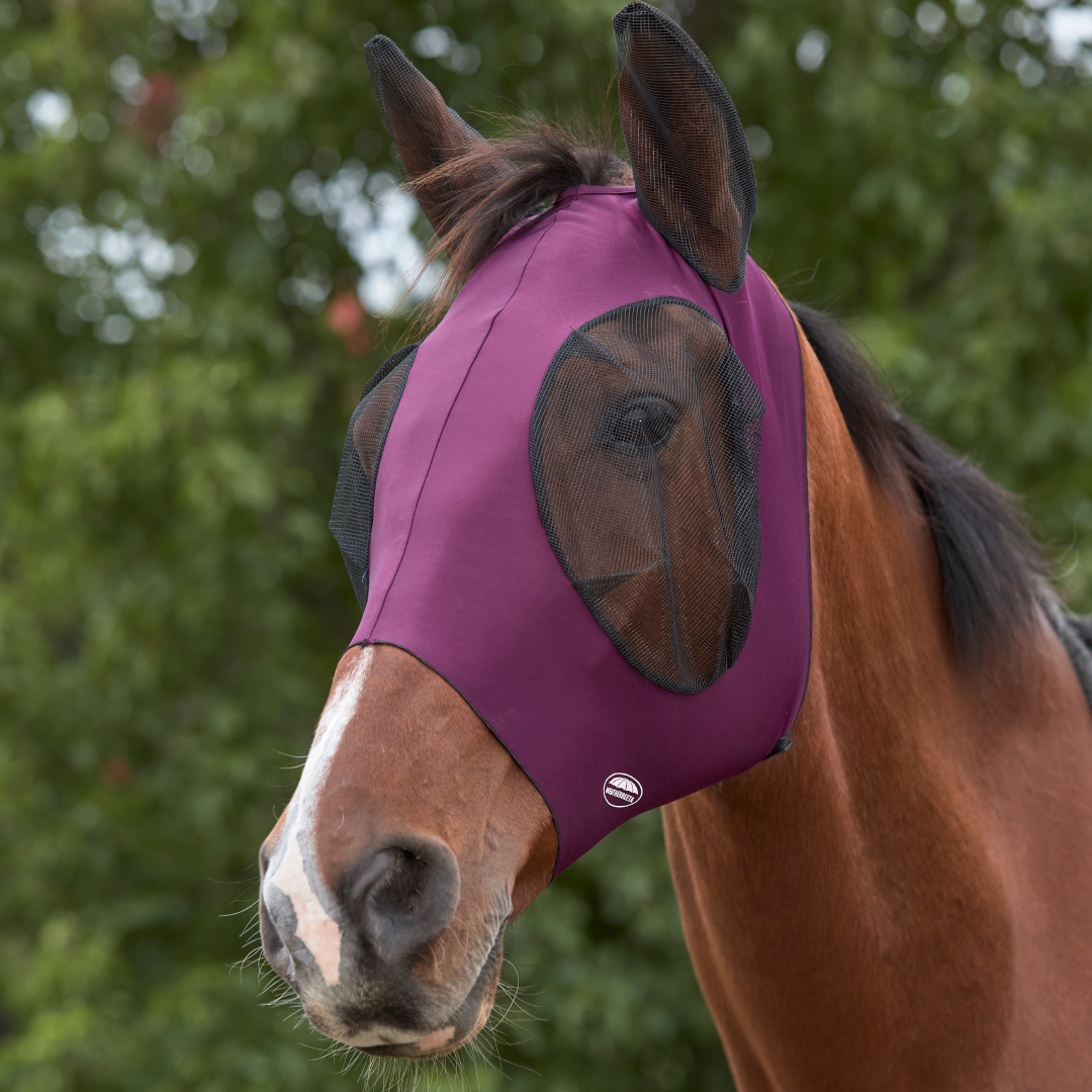 - The stretch fabric offers a secure fit around the horse’s head preventing insects from entering the mask