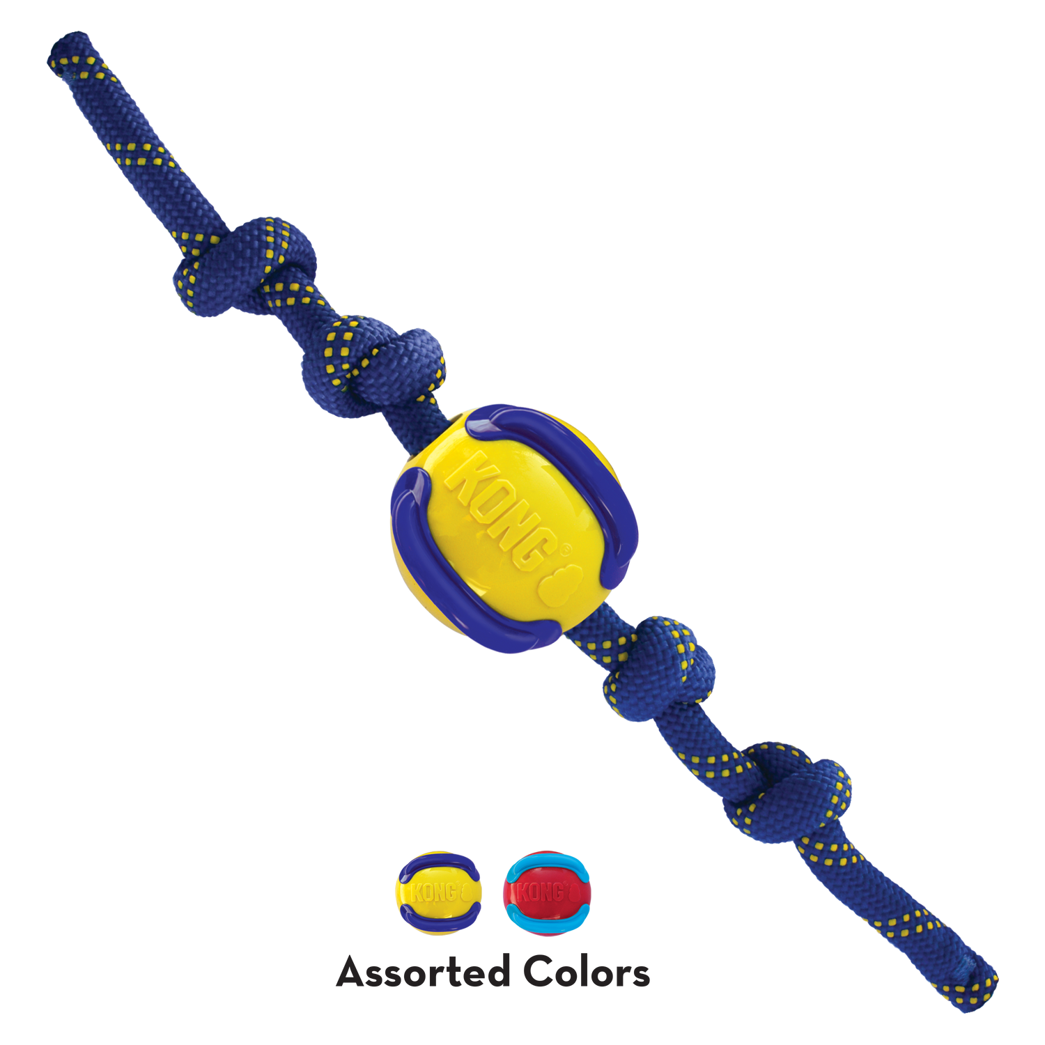 KONG Jaxx Brights Ball With Rope - Assorted / M is backordered and will ship as soon as it is back in stock.