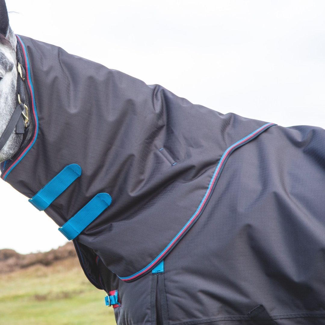 Featuring the durable ShireTex® 600D, fully waterproof, ripstop outer layer, and a warm but breathable 200g polyfill. This neck can be easily attached to your horse rug but simply looping the secure touch close fastenings through the D-rings on the rug for a quick and fuss free layering option.