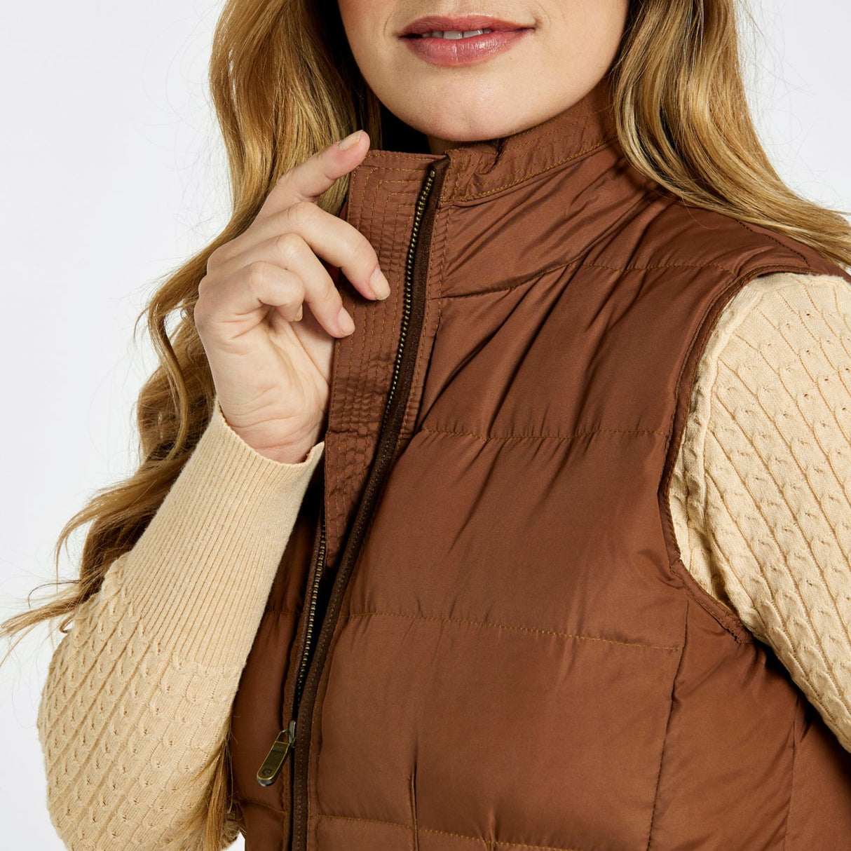 Super cosy, the Dubarry Spiddal Gilet is filled with fluffy feathers and down for plumped insulation yet tailored to give you a neat shape. Individually stitched panels keep the filling exactly where it should, a stand-up collar stops draughts and pockets are lined with fleece to help keep fingers from getting chilly. An excellent winter layer with a snuggly knit, or handy in cooler spring and autumn days over a light top.