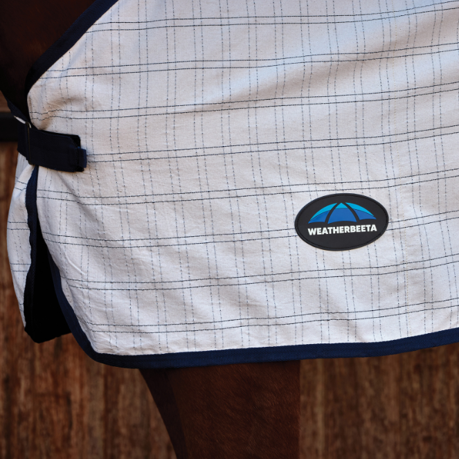 Weatherbeeta Comfitec Cotton Sheet Liner - White/Navy / 5'6 is backordered and will ship as soon as it is back in stock.