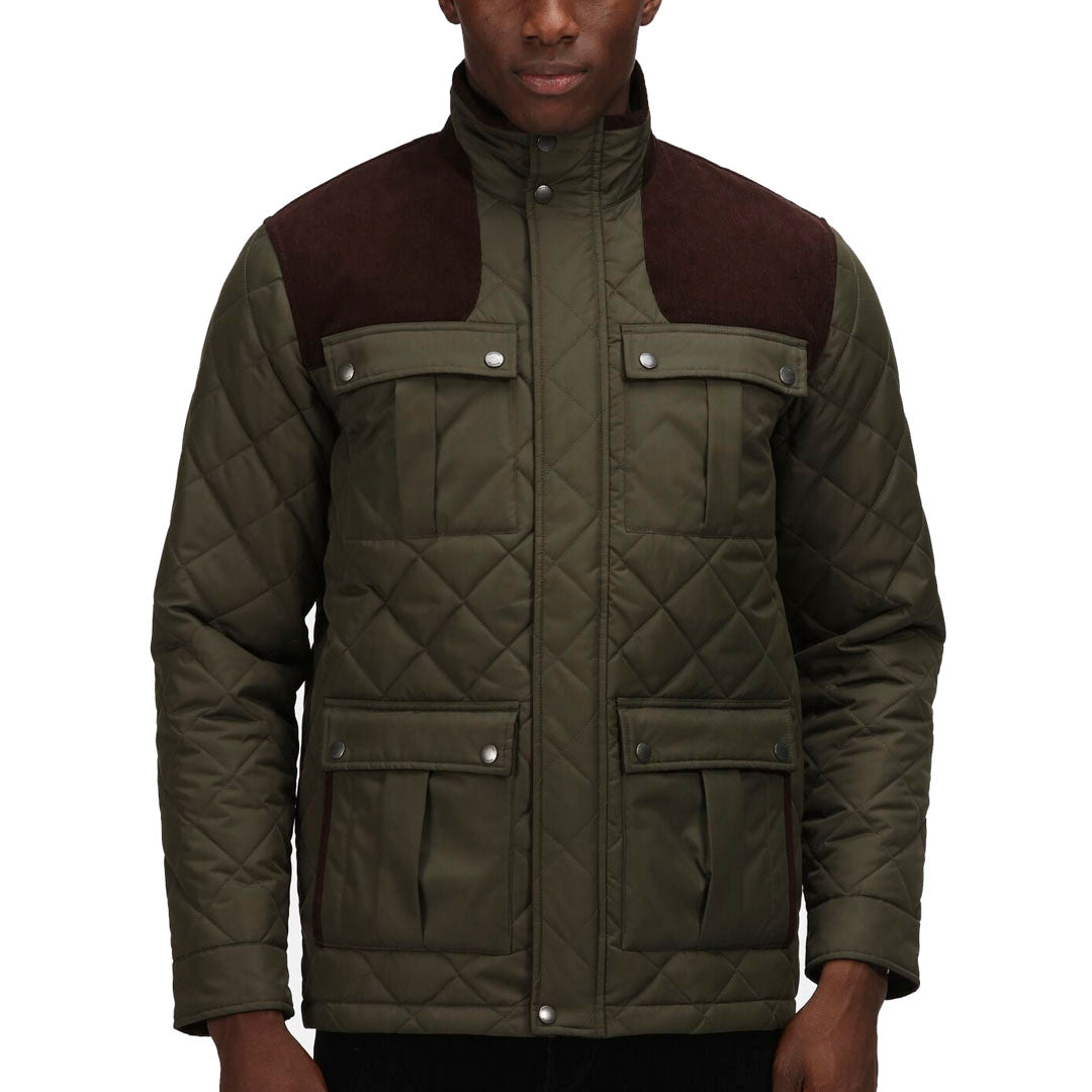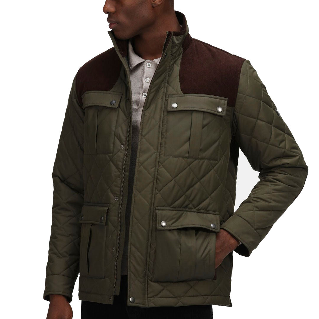 The Padbury Quilted Jacket from Regatta Professional. Water repellent, insulated and country vibes – the men’s work jacket is perfect for getting the job done in style. The men’s jacket features water-repellent fabric to see off light rainfall at work. It’s ideal for work on the farm, stables or country estate, and the corduroy shoulder and elbow overlay panels adds to the country casual style. The Thermoguard insulation keeps cold weather at bay.