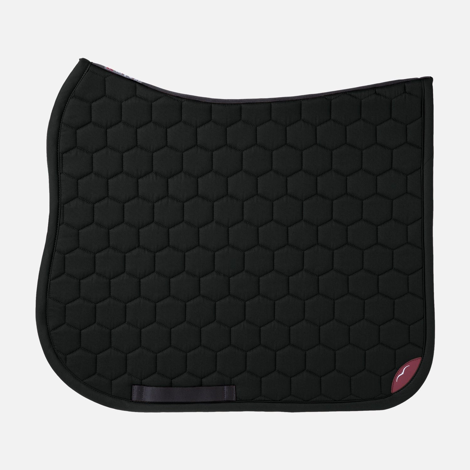 The technical inner material absorbs shocks and allows quick moisture wicking, keeping the horse dry and comfortable. The saddle pad is designed to retain its properties and dimensions even after multiple uses and washes. Classic design.