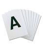 The Waldhausen Dressage Markers are made of durable, weather-proof plastic with clear black letters on a white background. This set includes 12 pieces for a 20 x 60 m dressage arena, including markers for A, K, V, E, S, H, C, M, R, B, and P, all measuring 20 cm x 30 cm each.
