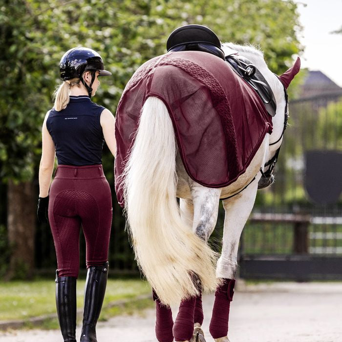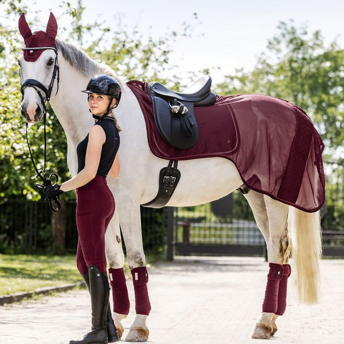 The Waldhausen Rom Excercise Rug is an elegant riding blanket made from breathable mesh with a floral insert. It features Velcro fastening for easy opening at the withers and has a tail cord for added security.