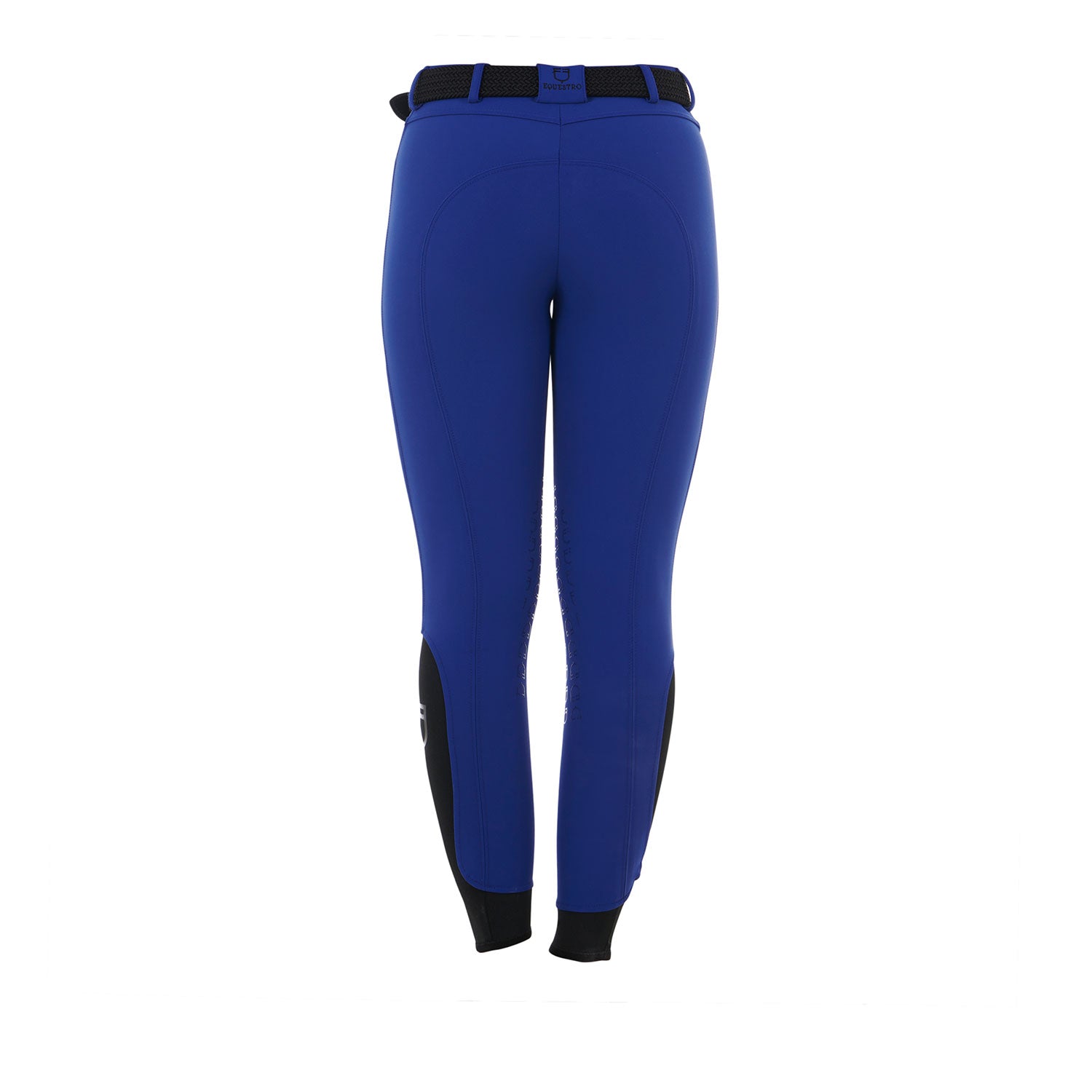 Women's slim fit breeches in latest generation bielastic and breathable technical fabric. The silicone grip on the inside of the knee ensures stability.