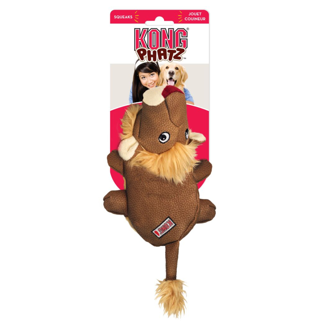 KONG Phatz zeichnen sich durch eine einzigartige Textur und ein innovatives Material aus und sorgen für Spaß beim Kauen. Die verstärkte Konstruktion für Langlebigkeit verlängert die Spielzeit, während der tiefe Quietscher die Neugier weckt, indem er für Klangvielfalt und Spannung sorgt. Diese entzückenden Tiere begeistern Hunde mit Sicherheit und erfreuen Tiereltern.