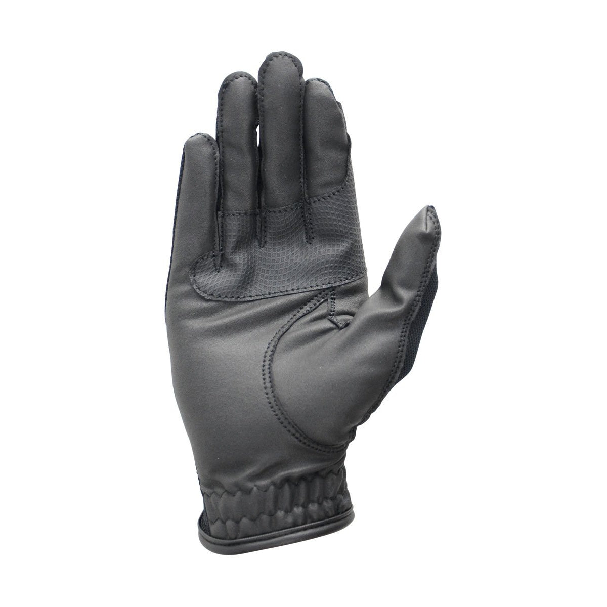 Ein superschicker Performance-Handschuh mit atmungsaktiver Mesh-Rückseite für eine kühle Hand und einer griffigen Lederhandfläche für perfekten Halt an den Zügeln. Mit zusätzlicher Polsterung an den Fingern und einem eleganten Lacklederstreifen, der den Look abrundet.