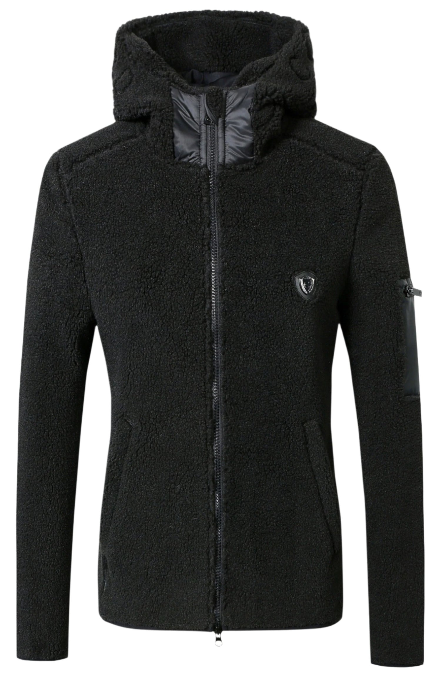Experience unparalleled comfort and style with the Covalliero Ladies Hoody Jacket. Crafted with a plush teddy fleece, this jacket features an integrated hood and a sleek slit pocket on the sleeve. Keep your hands warm with the two handwarmer pockets and easily adjust the fit with the 2-way zip. Plus, it's machine washable for easy maintenance at 30°C.