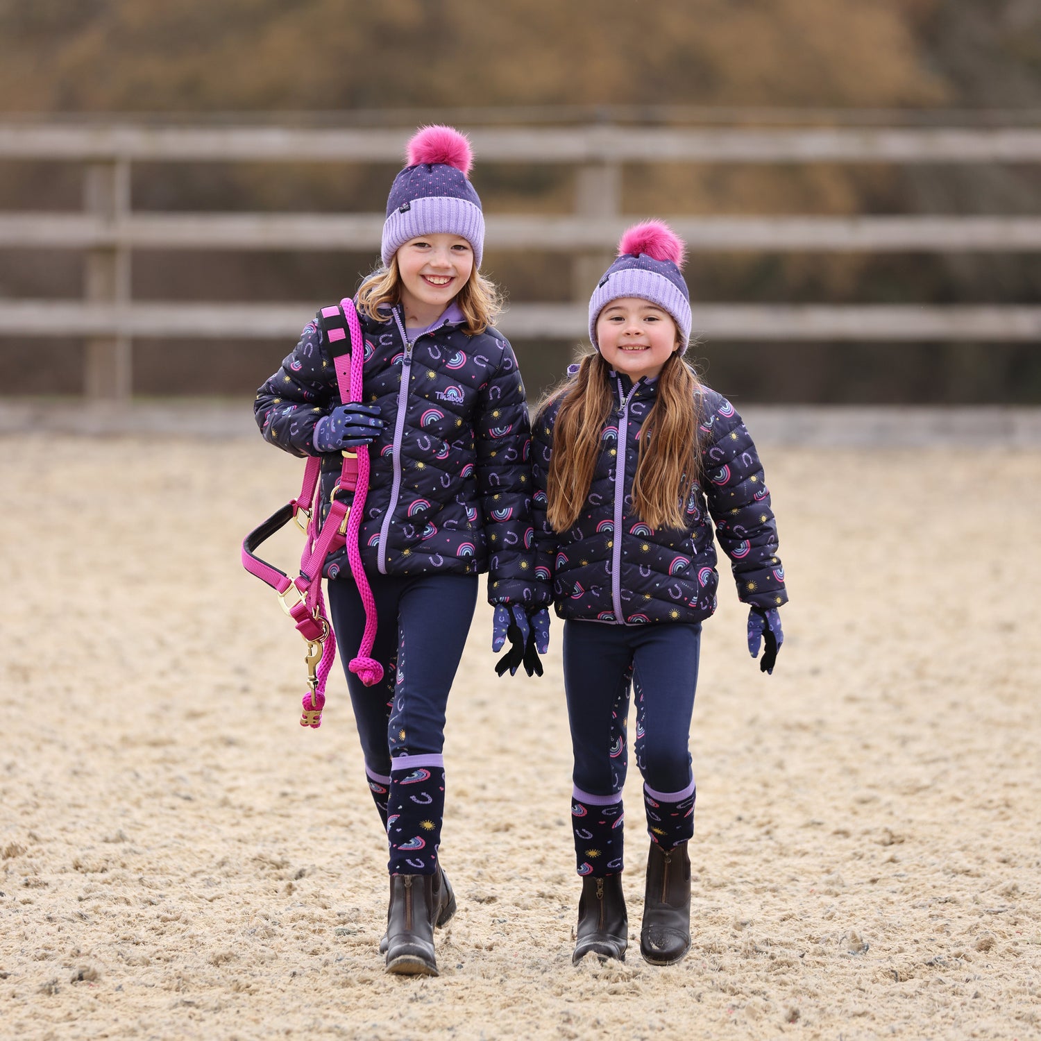 Der gepolsterte Shires Tikaboo Kindermantel ist einfach zu tragen und sorgt dafür, dass es vielbeschäftigte Ponyreiter auf dem Hof gemütlich haben. Es hat ein leichtes Tragegefühl und eine weiche Steppdecke mit Polyesterfüllung, um Kindern die Freiheit zu geben, Spaß zu haben. Eine kuschelige Kapuze bietet Schutz vor den Elementen und ist zusammen mit den Bündchen und Säumen mit einer Stretcheinfassung versehen.