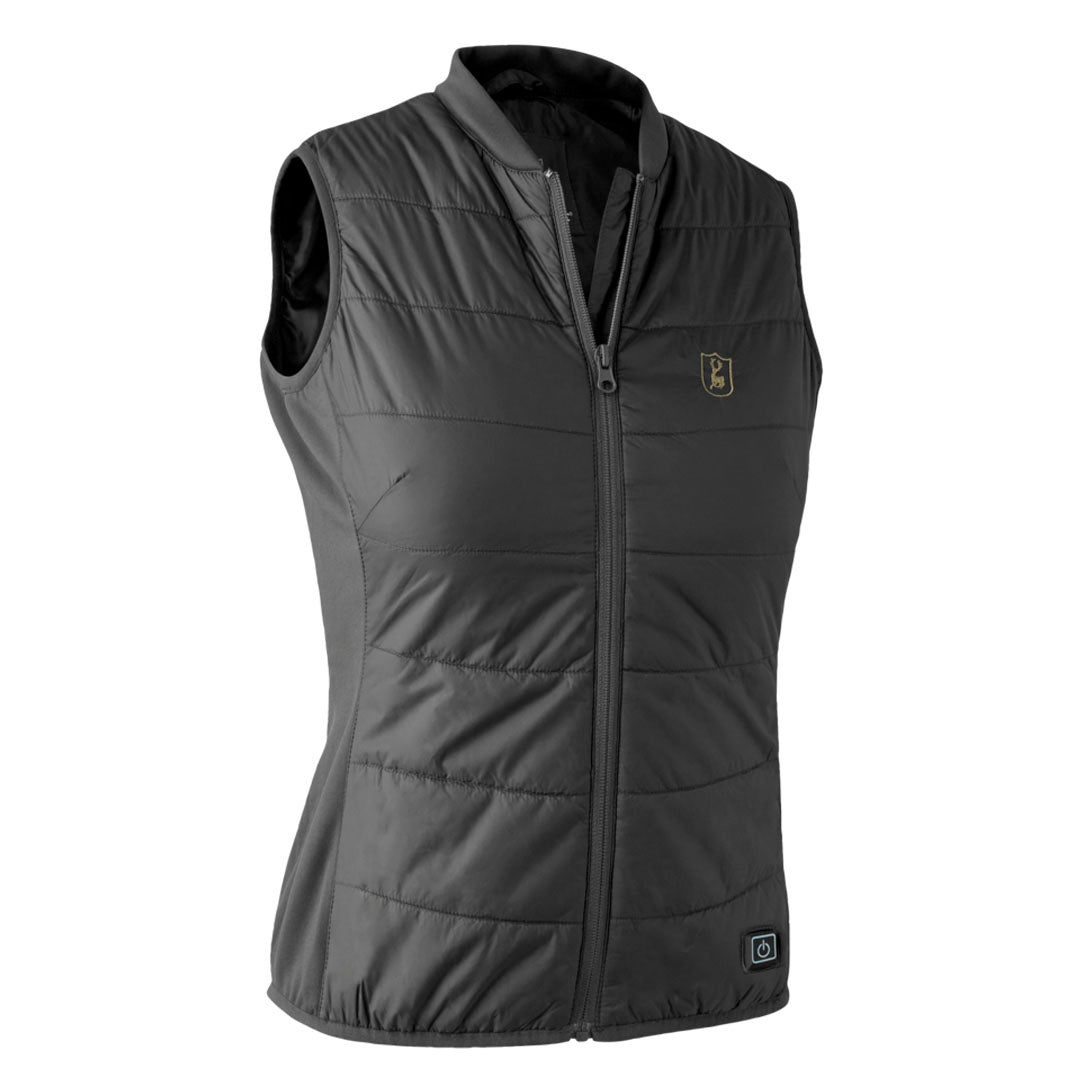 Die Heat Inner Damenweste von Deerhunter verfügt über ein integriertes HEAT-System, das durch leichtes Drücken auf der linken Seite der Weste aktiviert wird. Die Wärmedichte ist einstellbar und der Wärmegrad ist im eingebauten LED-Licht sichtbar, das die drei Wärmestufen anzeigt.