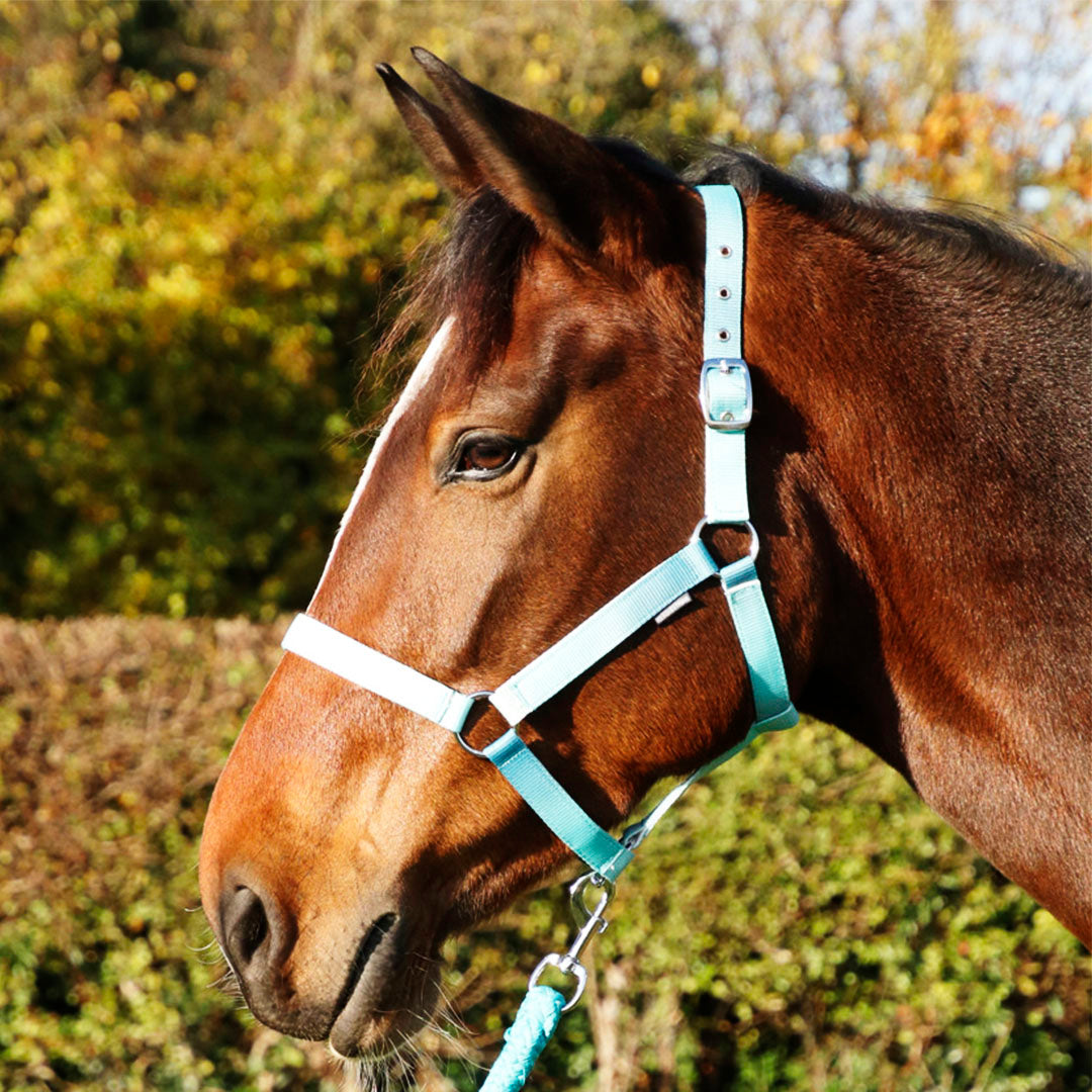 Bei der Auswahl aus vier Farben ist für jeden etwas dabei. Abgerundet mit einem verstellbaren Kopfstück mit Schnalle und einem passenden Führstrick.