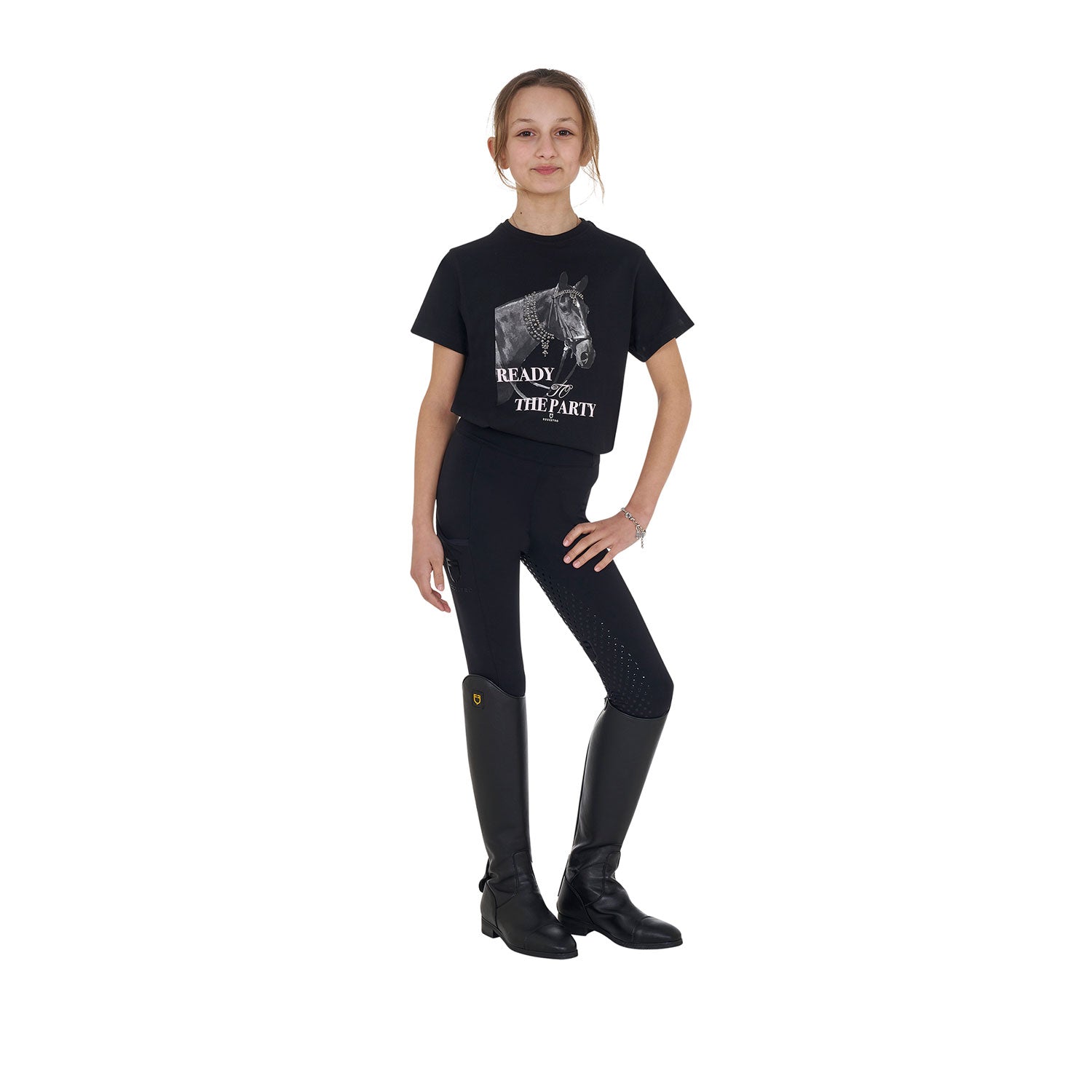 Equestro Girls' Ready To The Party Cotton T-Shirt With Rhinestones - Black / 12 Years ist auf Lager und wird versandt, sobald es wieder verfügbar ist