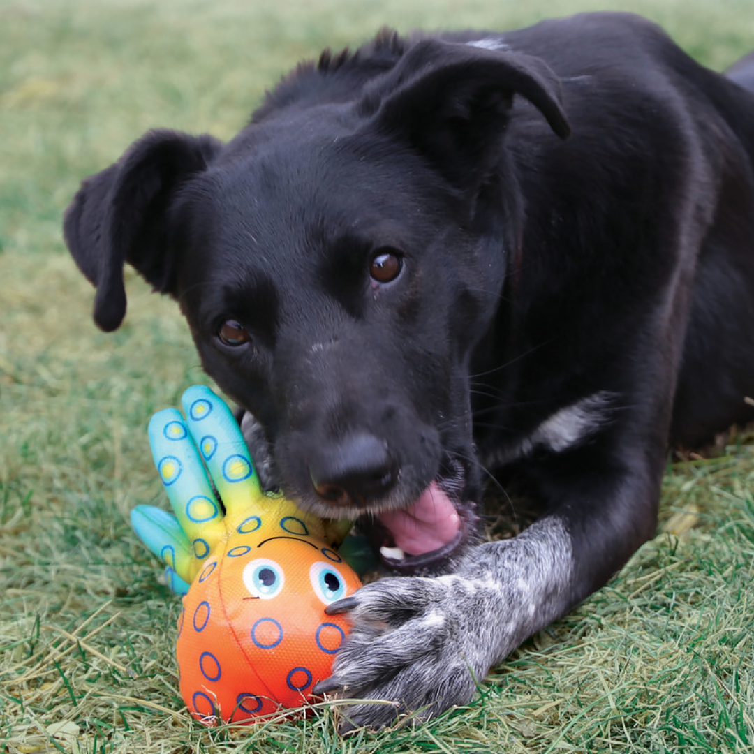 KONG Shieldz Tropics sind mit einer extrem haltbaren Beschichtung versiegelt, die auf Langlebigkeit ausgelegt ist. Das Äußere dieses lustigen Frosches schützt das dicht gefüllte Innere und sorgt dafür, dass Hunde viel Spielraum haben, um ihren natürlichen Kauinstinkt zu stillen. Ein Quietscher sorgt dafür, dass die Welpen lange spielen und Spaß haben. Diese langlebigen Freunde lassen sich leicht abwischen und eignen sich daher ideal zum Spielen im Innen- und Außenbereich. Außerdem schwimmen sie und sorgen so für Badespaß.