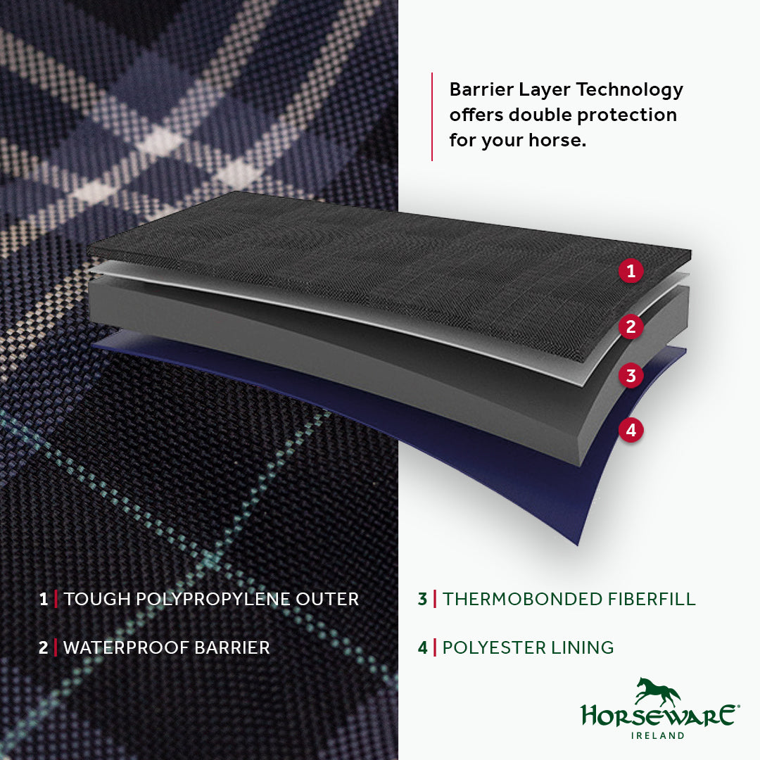 Horseware Ireland Rhino Plus mit Vari Layer Medium 250g - Marineblau kariert/blaugrün / 5'6 ist auf Lager und wird versandt, sobald es wieder verfügbar ist