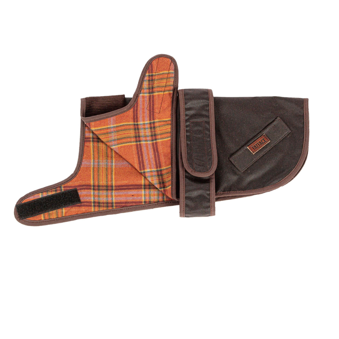 Danish Design Fatface Sussex Hundemantel – Dieser schokoladenfarbene Mantel ist vollgepackt mit vielen tollen Funktionen für pelzige Freunde. Hergestellt aus gewachster Baumwolle für eine natürlich wasserabweisende Außenseite und einem kuscheligen, karierten Futter in gebranntem Orange für Wärme. Der mit Kordel gefütterte Kragen kann hoch- oder runtergesetzt werden, um je nach Wetterlage mehr Schutz zu bieten, und ist mit verstellbaren Klettverschlüssen am Hals und in der Mitte ausgestattet. FatFace-Baumwollprodukte unterstützen einen nachhaltigeren Baumwollanbau.