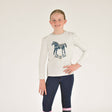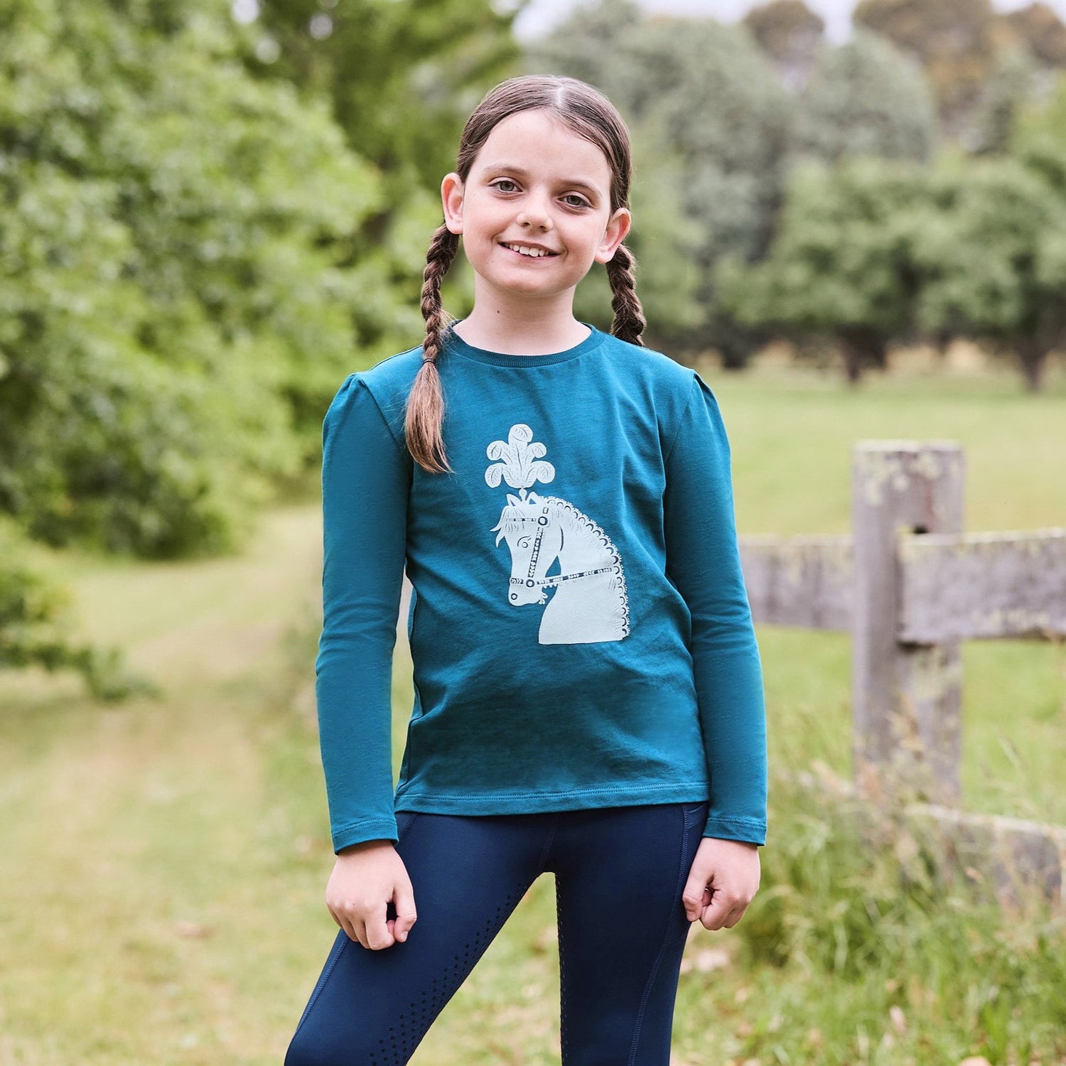 The Dublin Kids Poppy Puff Sleeve Tee is a soft cotton jersey tee with long sleeves offering breathability to ensure your child is comfortable all day long. With a round neck and alight puff sleeves in a regular fit, featuring a fun horse print design this is sure to be a favourite in your childs wardrobe! Being 100% brushed cotton fleece this is easy to wash and wear day in, day out!