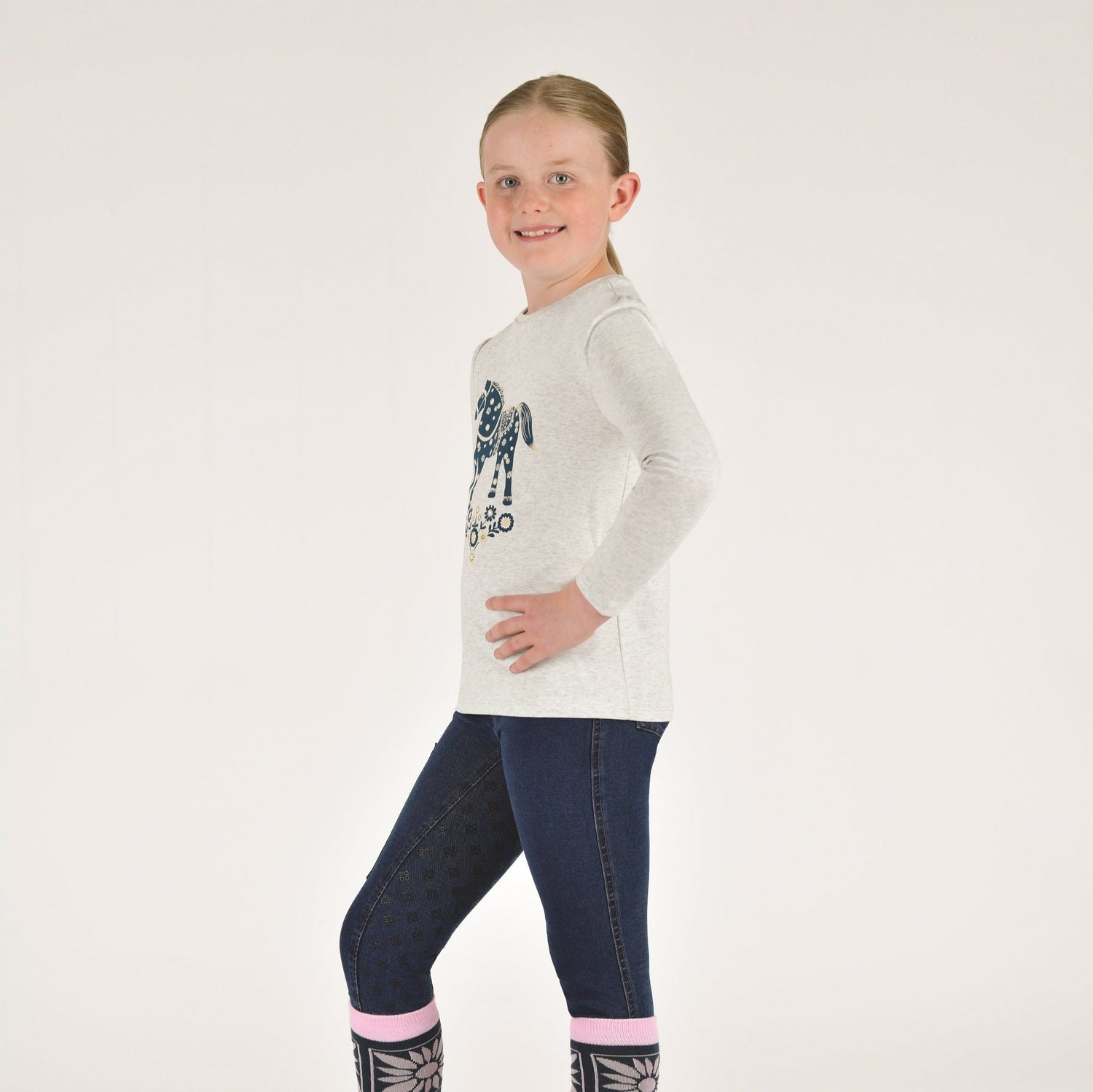 Dublin Kids Poppy Puff Sleeve Tee - White Marle/Nordic Pony / 6 Years ist auf Lager und wird versandt, sobald es wieder verfügbar ist