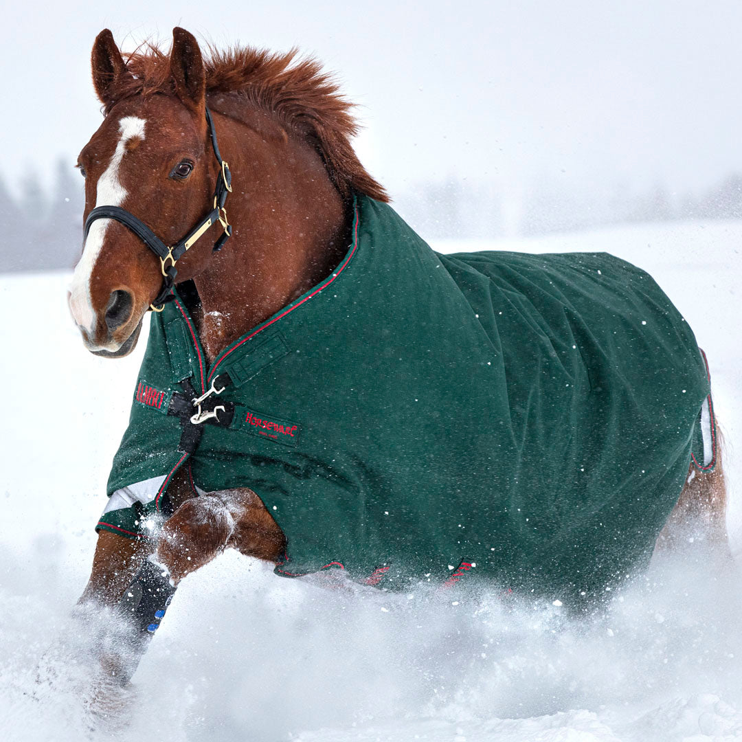 Eine Weidedecke fungiert als wasserdichte Isolierschicht und hilft, die Kondition bei kaltem Wetter aufrechtzuerhalten. Beachten Sie jedoch, dass sich die Bedingungen innerhalb kurzer Zeit ändern können. Stellen Sie immer sicher, dass sich Ihr Pferd jederzeit wohlfühlt.