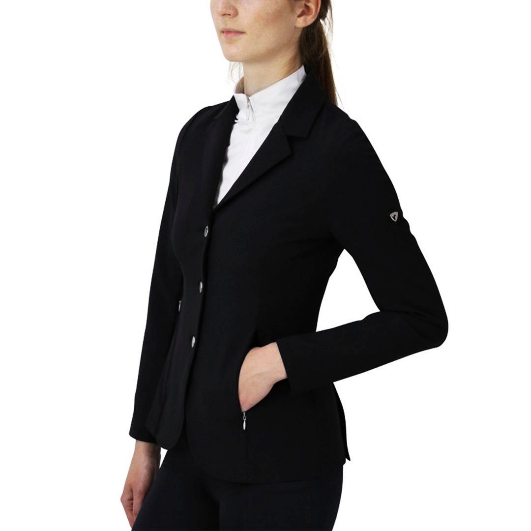 Diese Hy Equestrian Silvia Damen-Turnierjacke ist hervorragend aus einem bequemen, leichten und atmungsaktiven Material gefertigt, das keine Falten bildet!