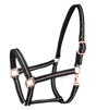 Softly lined halter, multiple adjustment possible on headpiece (one-sided). With rose gold fittings and striking yarn. Matches Rosé lead rope.