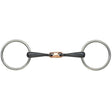 La combinaison douce de fer et de cuivre utilisée dans ce mors d'entraînement procure une chaleur au cheval qui favorise la salivation et dégage un goût agréable. Épaisseur de l'embout : 12 mm. Hauteur des joues : 65 mm.