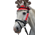 (Veuillez noter : les bois sont vendus séparément.) Cet ensemble de brides festives est livré avec trois pièces décoratives avec quatre cloches. Placez l'ensemble sur le frontal et la muserolle de votre bridon. La conception Velcro rapide à installer s'adaptera à une gamme de brides parfaites pour une photo de Noël. Taille unique.