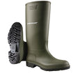 Bottes en caoutchouc Dunlop Pricemastor ; Doublure en nylon facile à nettoyer, résistante aux acides et alcalis faiblement concentrés, aux désinfectants et au fumier. Vert avec semelle noire. Norme : CE