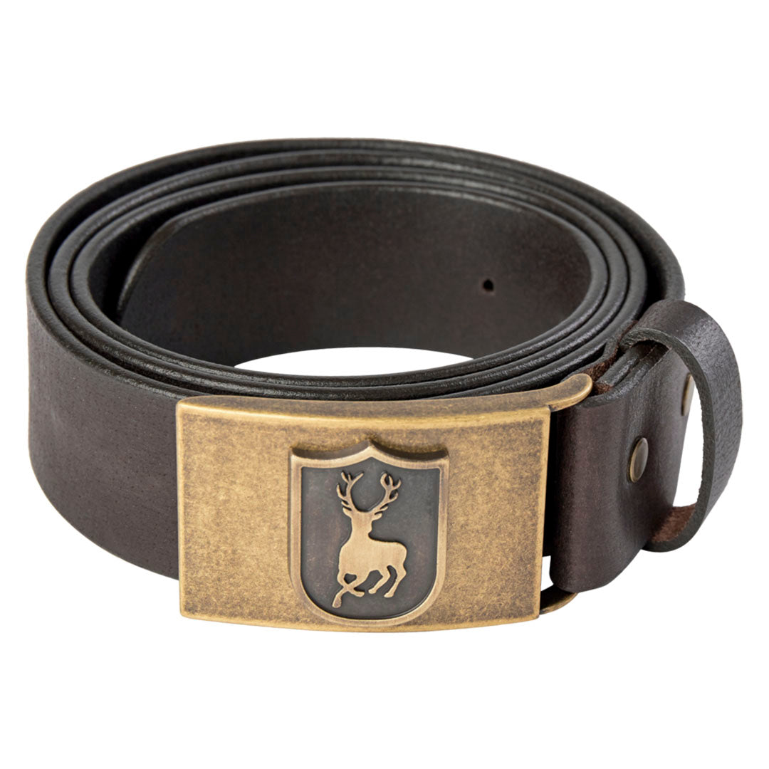 La ceinture est élégamment équipée d'une boucle dorée mate et de la marque Deerhunter en relief.