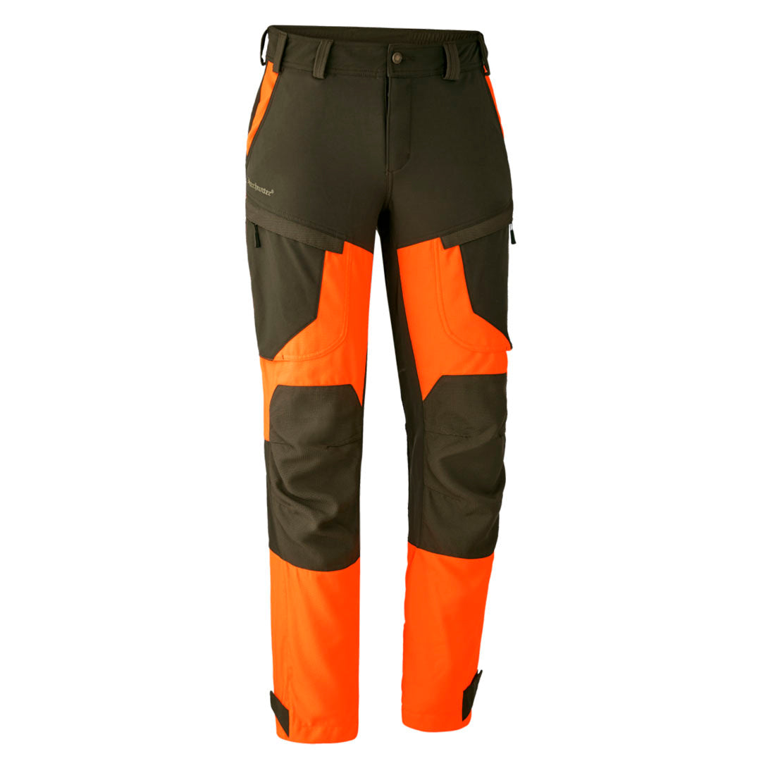 Conçu avec un mélange orange et vert vif pour garantir la sécurité, qui est un aspect clé de toute activité de chasse. Les genoux préformés, la taille élastiquée, les zones extensibles dans 4 directions et les chevilles réglables avec sangle et velcro permettent un ajustement confortable tout en conservant la maniabilité.