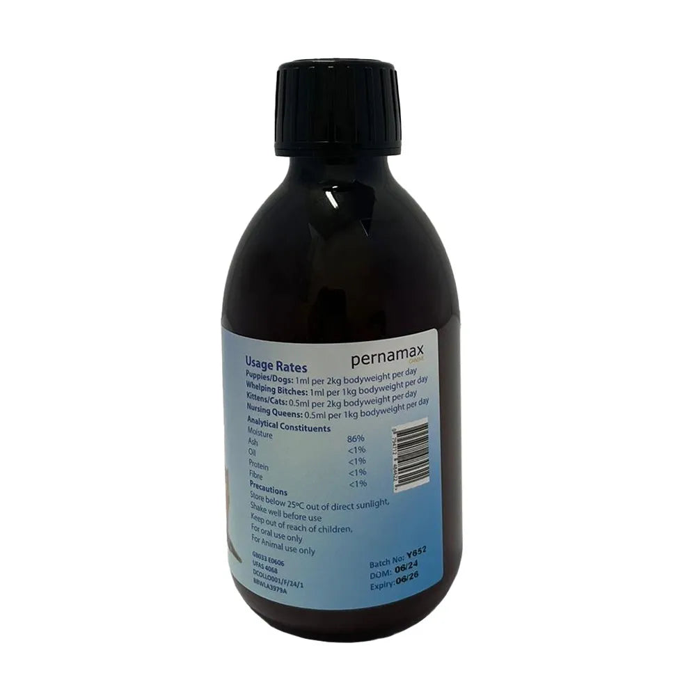 Vitamin D & Calcium - Palatable and popular with both cats and dogs, Perna Col-Cal D is a delicious Calcium & Vitamin D supplement specially designed to ideally meet the nutritional requirements of young animals, whelping bitches and nursing queens. Also suitable for administration to older animals to supplement their diet. Perna Col-Cal D is highly palatable & can simply be added to drinking water. Calcium is well known as an essential component for optimal bone growth and bone structure, hence why a Calcium-rich supplement is ideal for young, growing animals. Vitamin D improves is known to enhance the absorption of Calcium, maximising the efficacy of your supplement. Usage Rates Puppies/Dogs: 1ml per 2kg bodyweight per day Whelping Bitches: 1ml per 1kg bodyweight per day Kittens/Cats: 0.5ml per 2kg bodyweight per day Nursing Queens: 0.5ml per 1kg bodyweight per day.