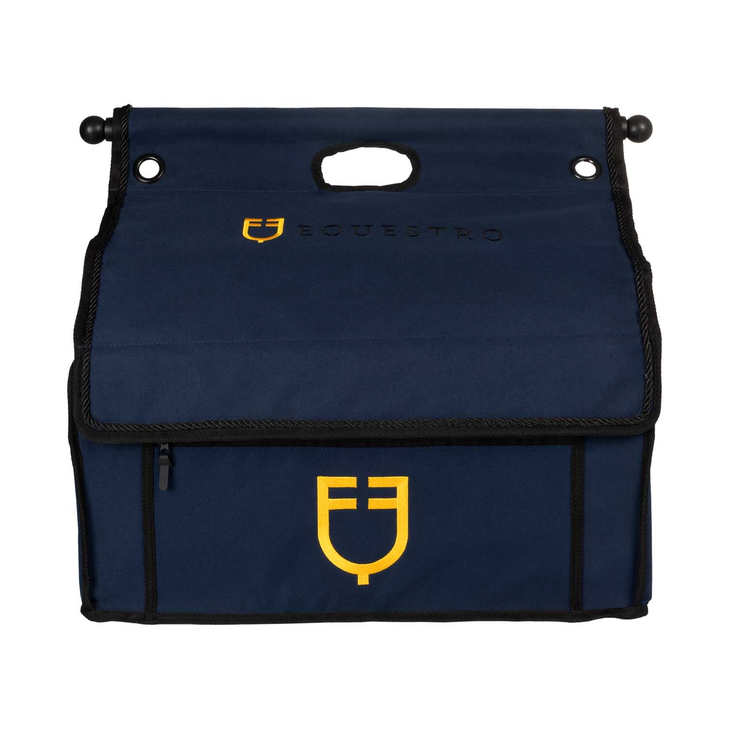 The Equestro Grooming Bag With Bar is crafted from durable Cordura polyester, ensuring long-lasting use and easy care. Its sturdy wooden bar keeps the bag’s shape even when fully packed, while two metal eyelets allow secure attachment to your box or truck. Featuring a central handle for easy transport, a front zip pocket for quick access to essentials, and two spacious internal compartments, this bag helps you organize all your grooming tools efficiently. The hook-and-loop main closure offers fast and convenient access, making it the perfect companion for every horse grooming session.