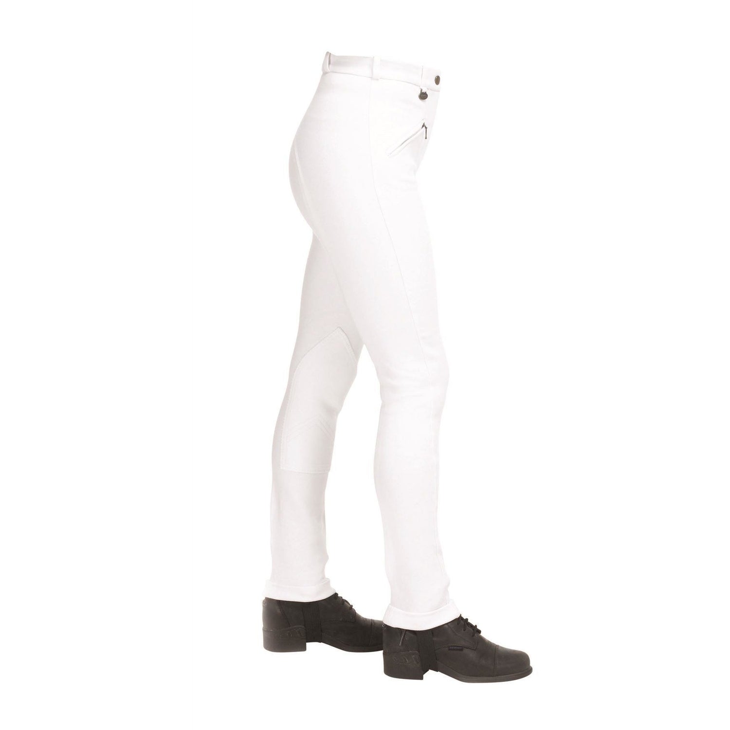 Ce jodhpur pour femme de coupe classique est confortable, pratique et de style traditionnel. 94 % coton et 6 % élasthanne de qualité supérieure pour une excellente élasticité dans les 4 sens et un confort optimal. Doté d'une poche zippée discrète sur le devant, d'une fermeture éclair complète, de passants de ceinture avec coutures renforcées et d'une sangle de botte élastique aux chevilles (amovible) avec bas retroussé.