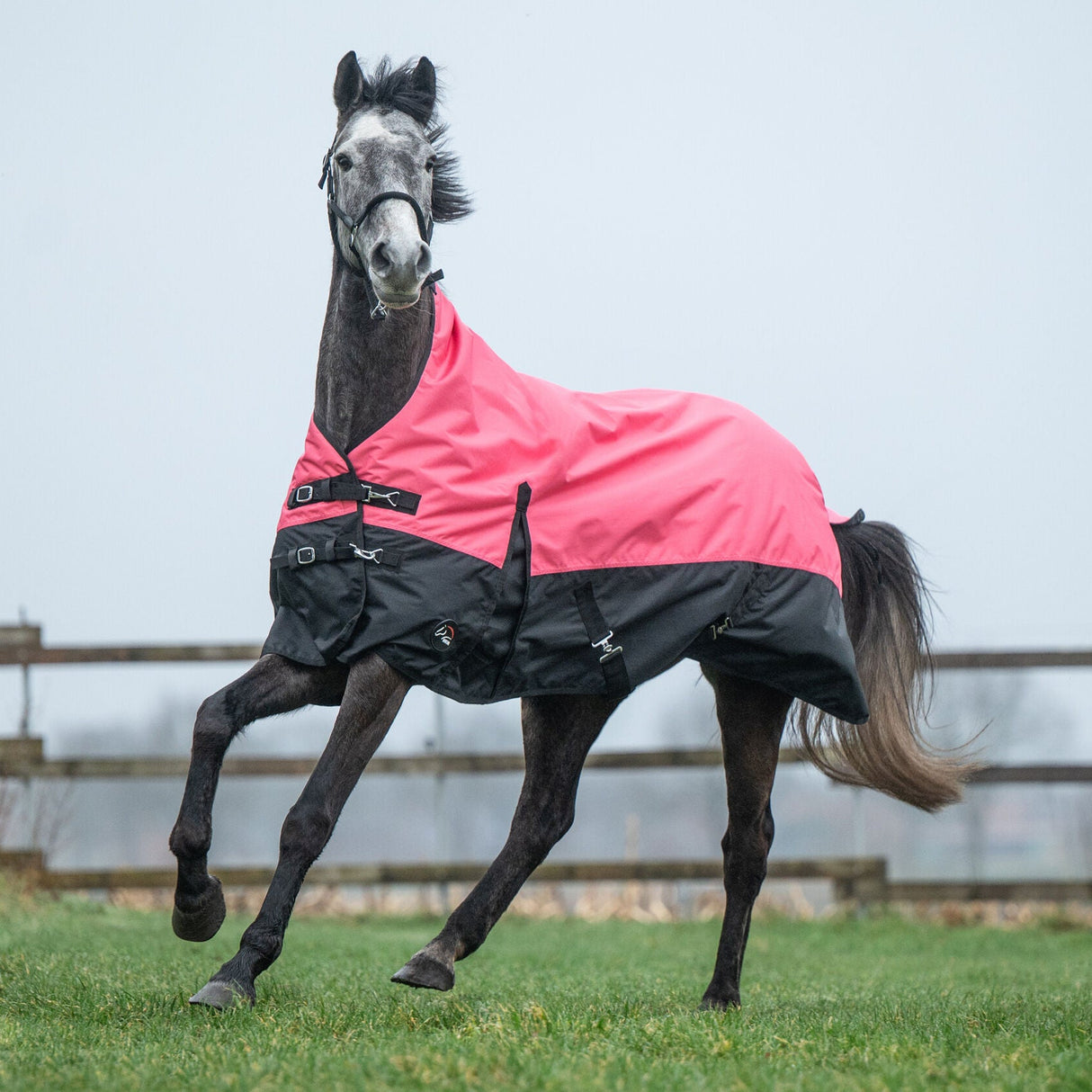 The HKM 600D 300g Highneck Rug -Norwich- is a durable and functional choice for your horse. With its waterproof, windproof, and breathable design, it offers superior protection and comfort. The 300g cotton filling provides warmth and the smooth, rip-proof fabric is easy to clean. Plus, the rug comes with adjustable front closures, a tail strap and guard, and a convenient bag.