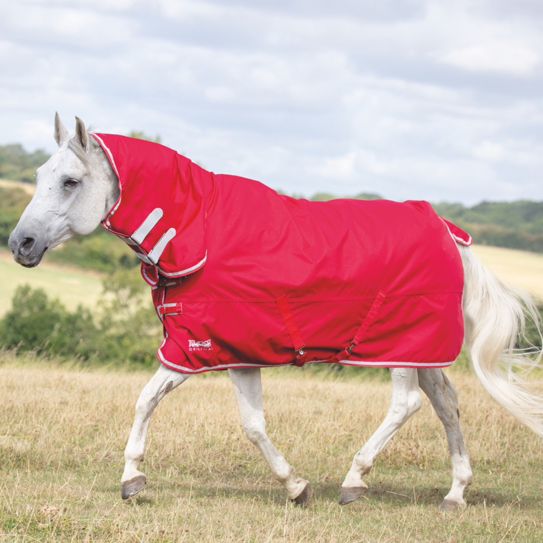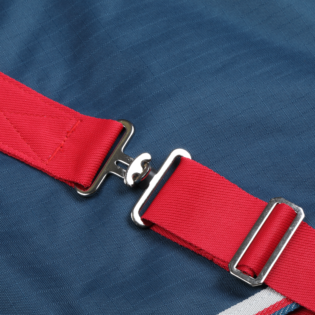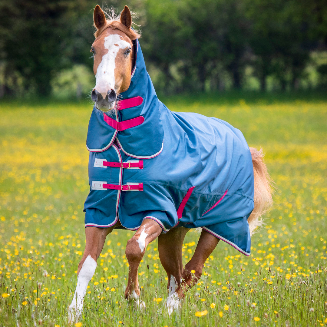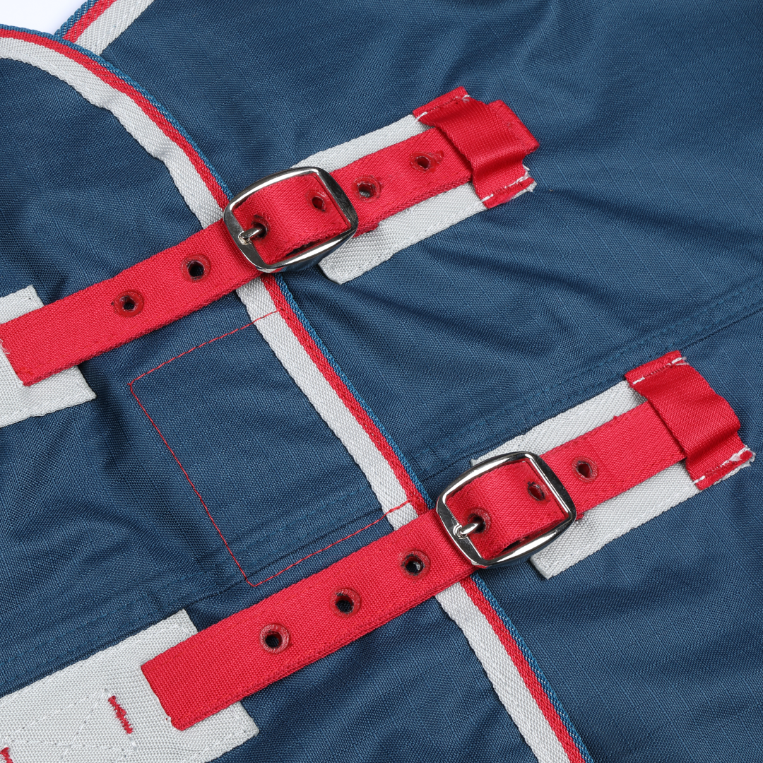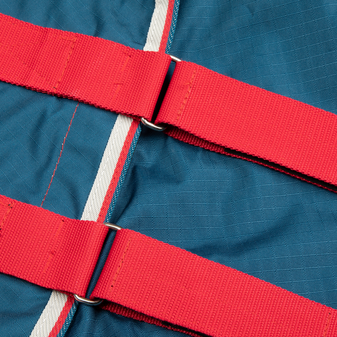 Conçue pour résister à une usure moyenne sur le terrain, la couverture est dotée d'un extérieur ripstop 600 deniers entièrement imperméable, et avec l'avantage supplémentaire d'un cou profilé, vous pouvez sortir votre cheval en sachant qu'il sera heureux et au sec, et relativement exempt de boue!