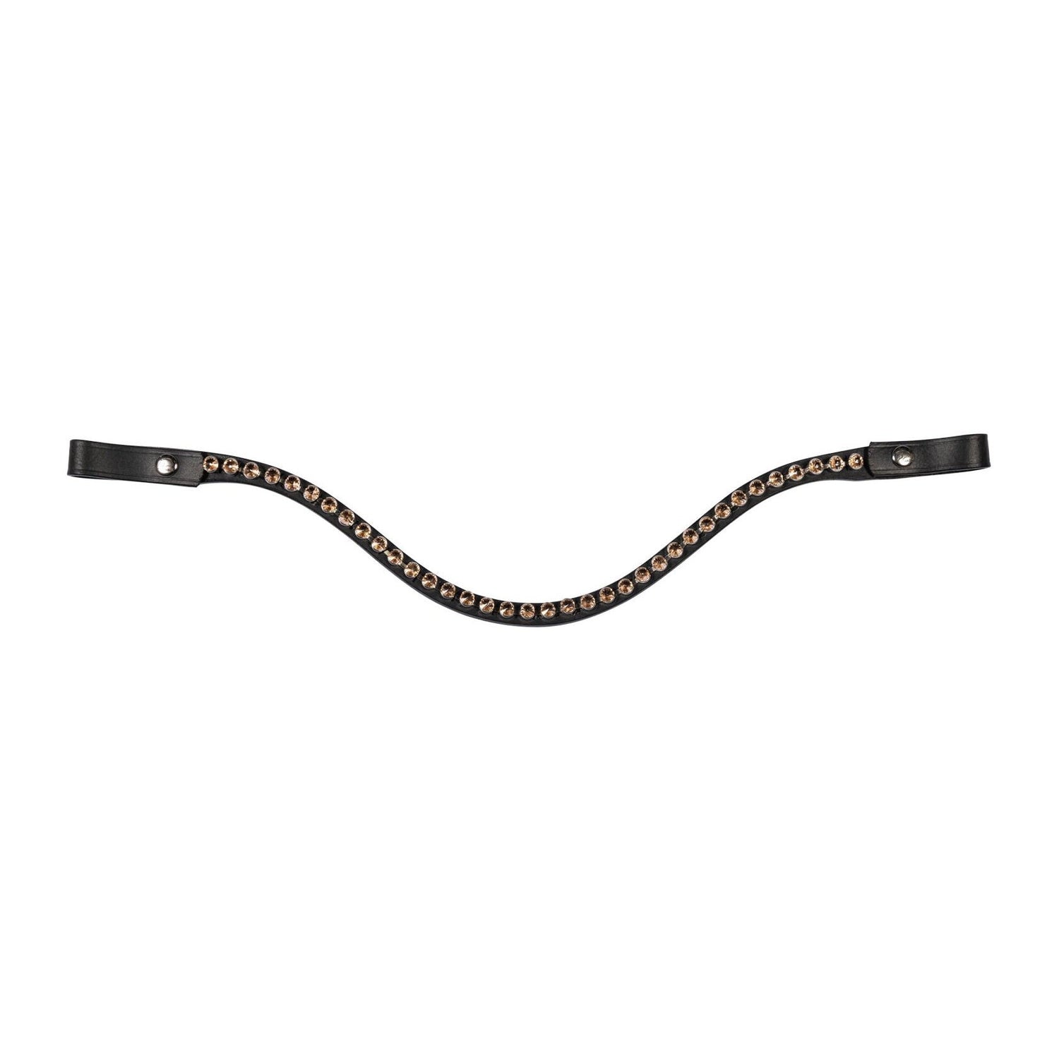 Enhance your horse's stylish look with the HKM Browband -Passion-. Featuring press stud fasteners, a sleek u-shape design, and high quality leather, this browband is adorned with glistening rhinestones for added elegance.