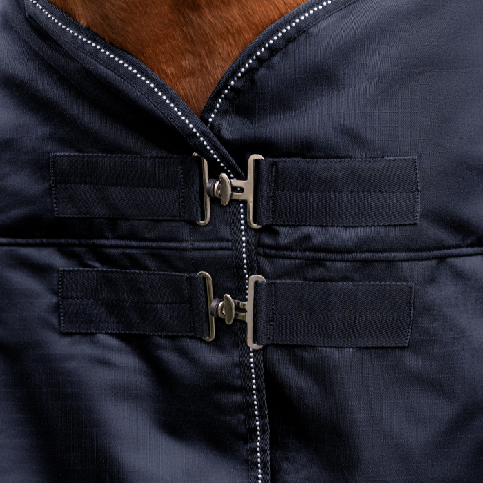 Offer your horse optimum outdoor comfort on cool days with the Waldhausen Nordic turnout rug. The double T-front fasteners ensure a perfect fit. The piping with reflective details increases visibility in poor light conditions. The kick pleat provides great freedom of movement. The 600 denier outer material is durable and will keep your horse warm as well as dry.