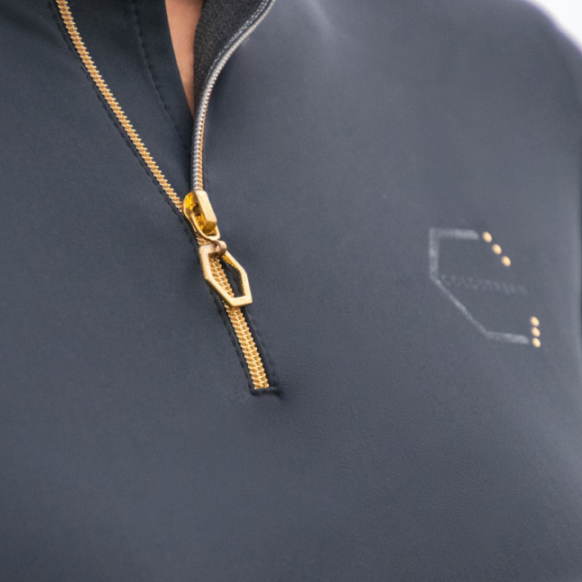 Panneaux latéraux en maille pour aider au contrôle et à la régulation de la température, permettant une circulation d'air optimale lorsque le cycliste actif en a le plus besoin. Fini avec des détails subtils ton sur ton et dorés.