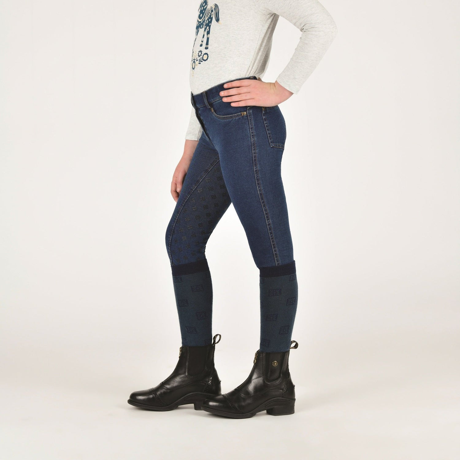 The Dublin Kids Shona Denim Full Seat Breeches offer a classic horse riding look, but with a modern twist. Featuring five pockets, the bi-stretch denim fabric offers compression and coverage, whilst the denim belt loops create a stylish riding look. With front zip and snap closure for ease and style; a mid-rise, no gap waistband offering a slim and flattering fit. Stretch fabric cuff at the ankle for comfort. Available in Blue Denim, in childs and ladies sizes.