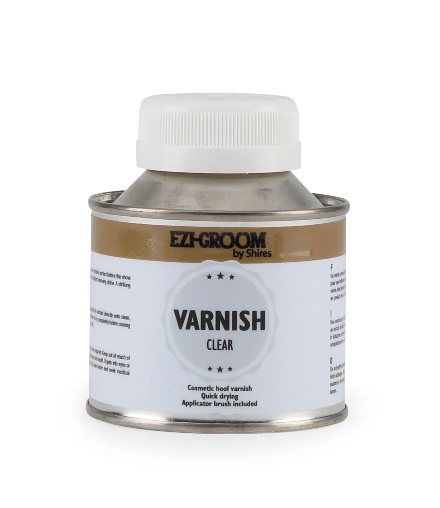 A quick-drying cosmetic hoof varnish, perfect before the show ring. Apply to dry hooves for instant, deep black colour(black) or stunning shine (clear). A striking finishing touch! Brush included. From the growing range of EZI-GROOM horse care products.