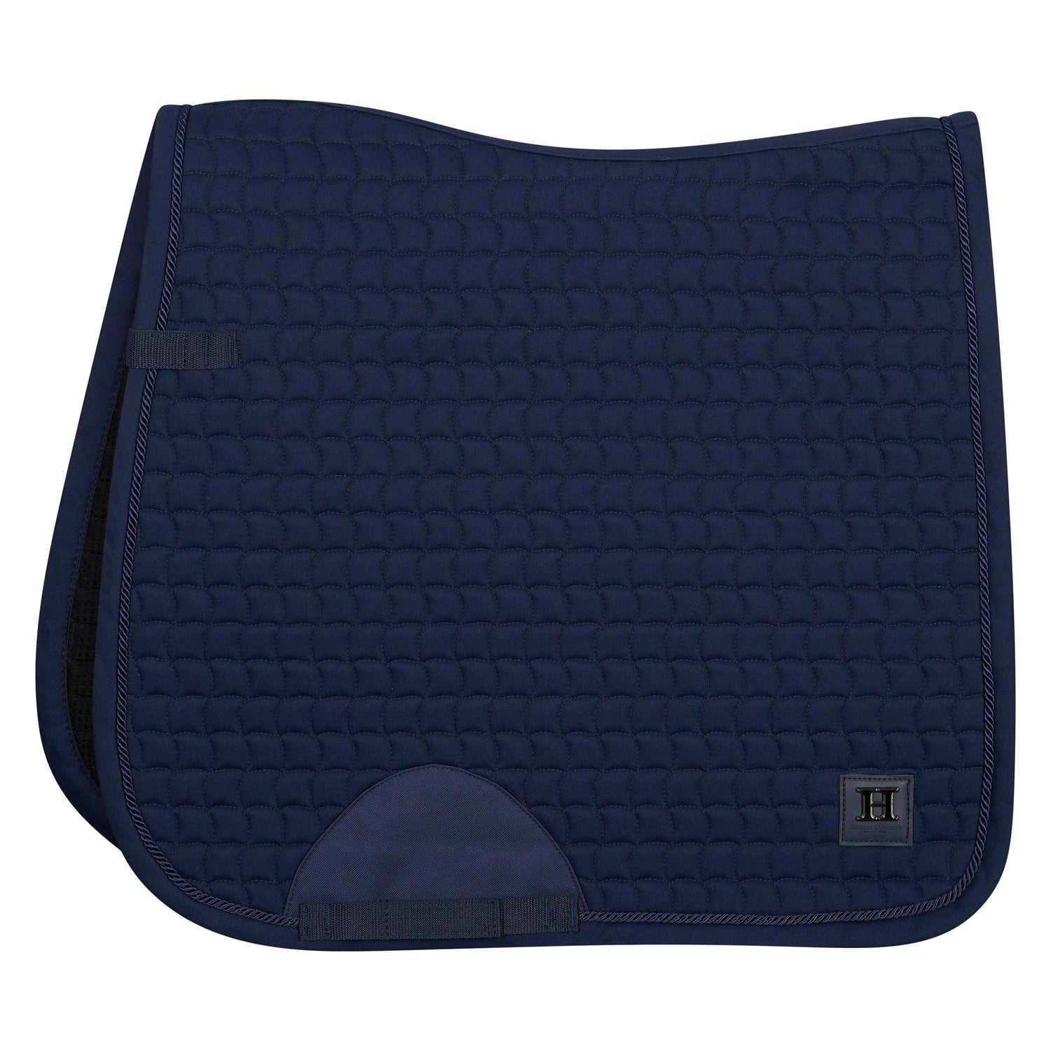 Elevate your ride with the HV Polo Dae Dressage Saddle Pad. Featuring waffle lining for cooling and durability, this pad also has extra space at the withers and padded reinforcement for added comfort and protection. Its small wave quilting, fancy rope along binding, and metal logo badge add style to your ride.