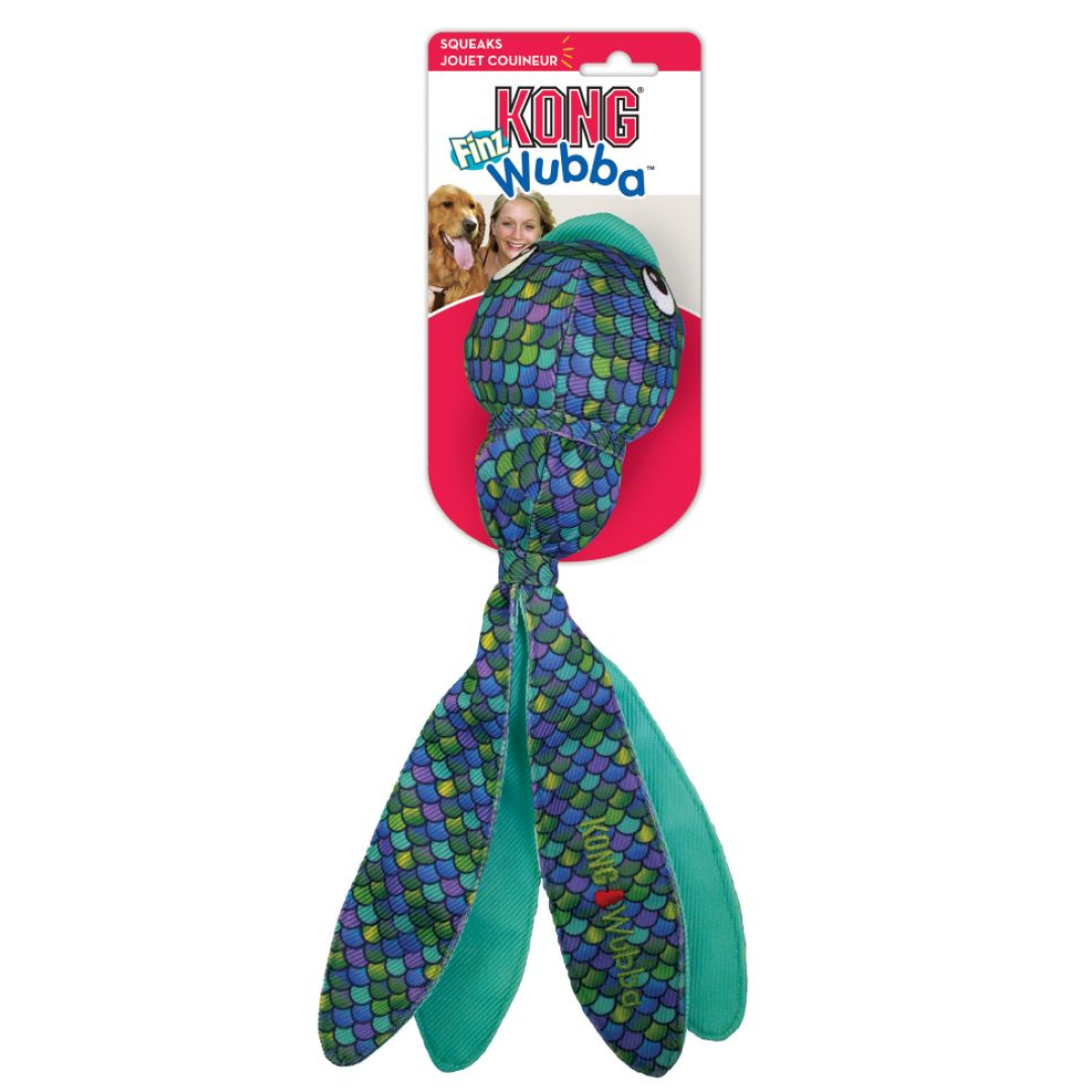 Le nouveau KONG Wubba Finz a de longues queues souples qui facilitent le tiraillement et sont très amusantes à secouer pour votre chien, satisfaisant ainsi ses instincts naturels de raclée. Deux balles à l'intérieur aident KONG Wubba Finz à rebondir et à grincer, prolongeant les jeux de capture et de relâche pour des tonnes de jeu sain et actif. Ce poisson volant est fait pour planer dans les airs et lancer votre chien dans une frénésie de récupération !