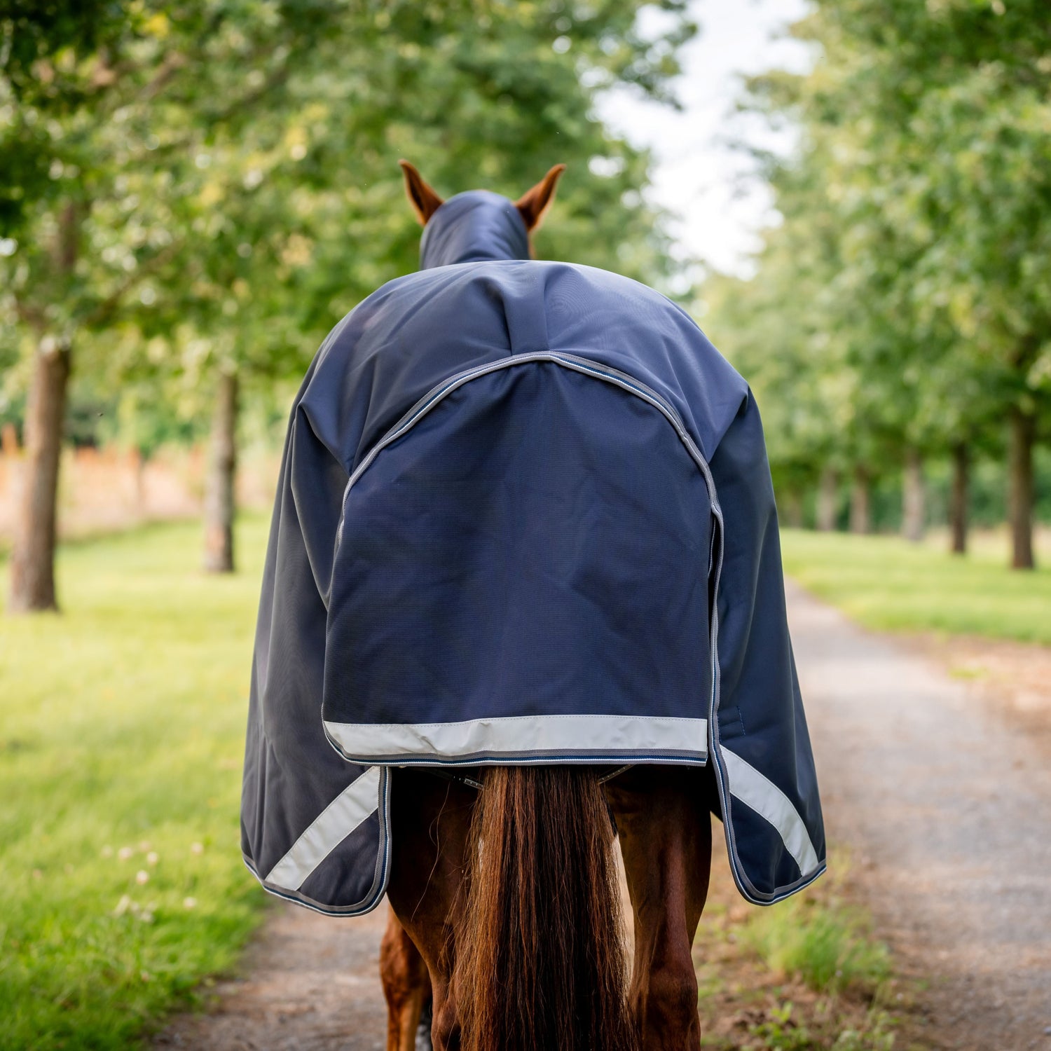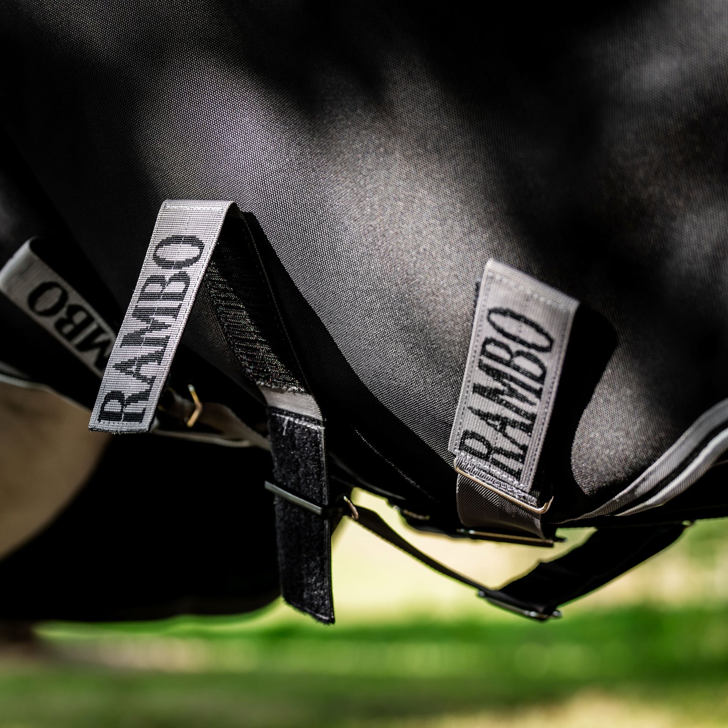 Other highlights include reflective strips for increased visibility, a waterproof tail flap for added protection, a wipe-clean tail cord, three crossed webbing surcingles with the Rambo® Safety Surcingle System for a secure fit, a Velcro sandwich hood attachment for optional hood compatibility, and leg strap compatibility for additional stability. The anti-static, anti-bacterial lining enhances both the comfort and hygiene of the rug.
