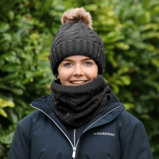 Hy Equestrian Melrose Cable Knit Snood - Black / One Size is backordered and will ship as soon as it is back in stock.