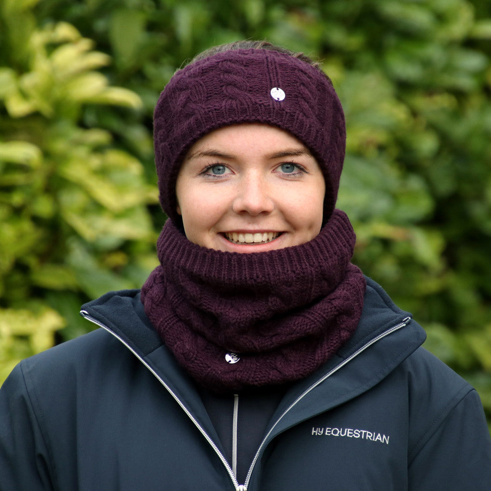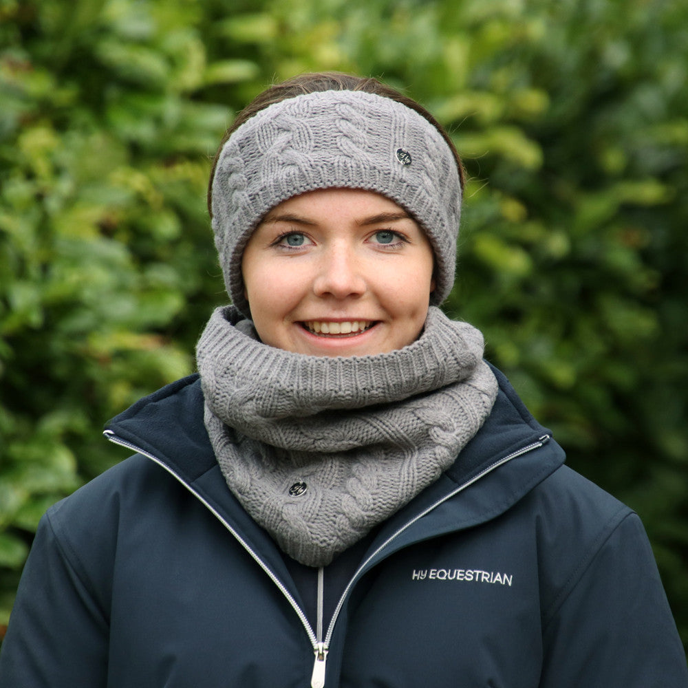 Keep cosy and snug this winter with this gorgeous cable knit snood. The inner features soft fleece lining, designed to trap warm air against your skin for a snug feel. Matching headband and hat available.